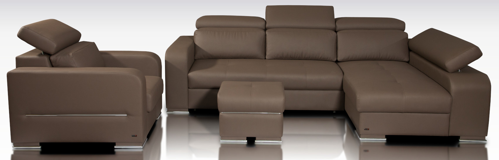 Vnitřní prostory sedací soupravy jsou vyplněny pružinami faliste s vysokoelastickou HR pěnou. Použitý materiál vám zajistí relax a komfort po náročně stráveném dni. K opěradlům jsou namontovány záhlavky s pneumatickým zvedáním se 6 stupni polohování zaručující správné držení těla.