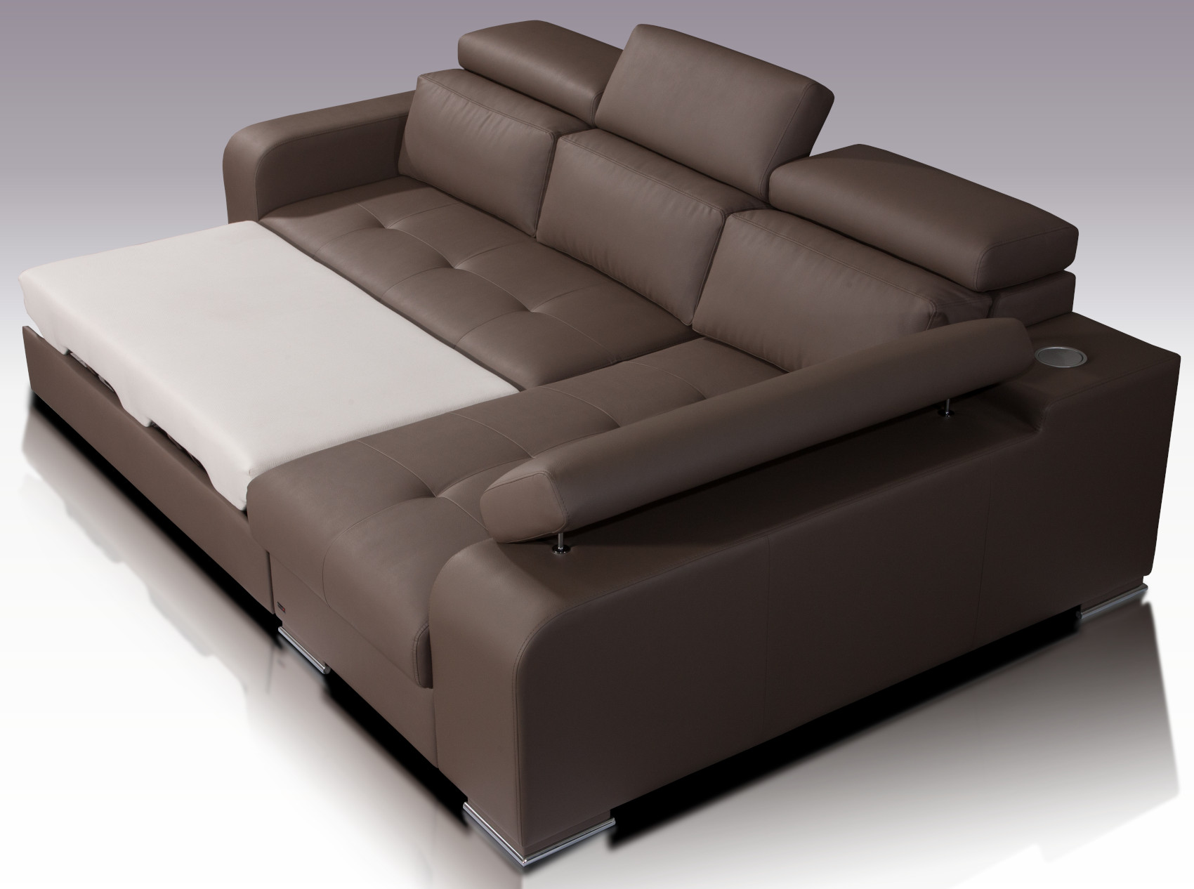 Součástí sedačky je rozkládací systémem ke každodennímu spánku a prostor k uložení ložního prádla, přikrývek a polštářů. Sedačka stojí na nízkých chromových nožkách ve stříbrném odstínu. Za příplatek si můžete zvolit variantu s vysouvací lištou se zdrojem napájení.