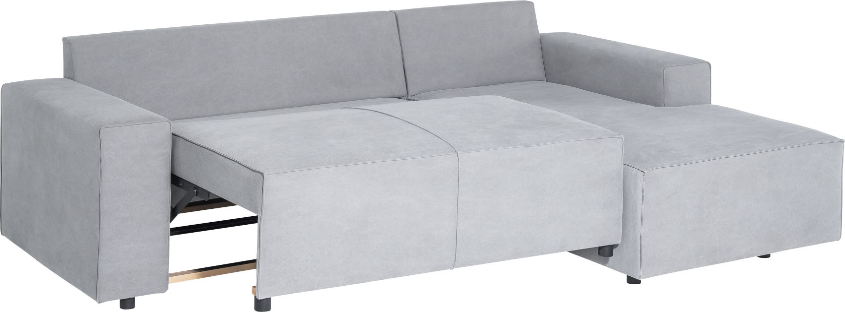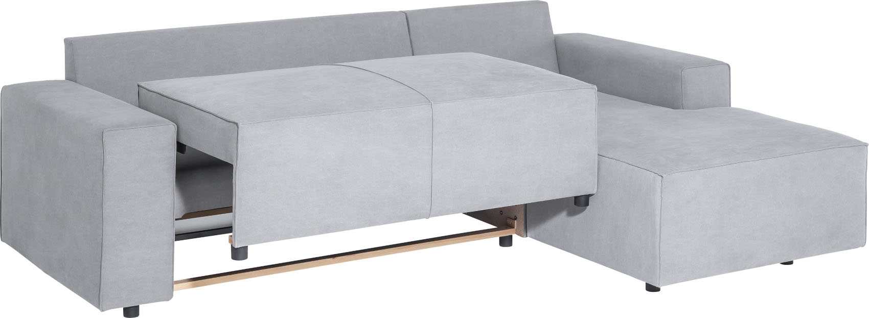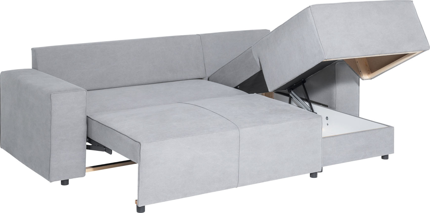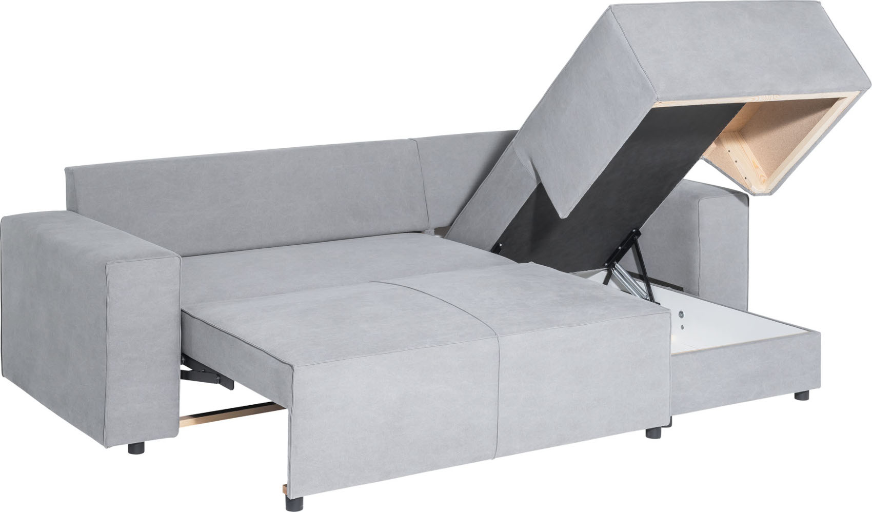 Moderní rohová sedací souprava Logan vás zaujme svým jednoduchým a elegantním designem. Nízké černé plastové nožky lehce provzdušní váš celkový interiér. Součástí pohovky je prostor k uložení lůžkovin, přikrývky nebo polštářů a rozkládací systém puma. Ten lze využít k občasnému přespání až pro 2 osoby.
