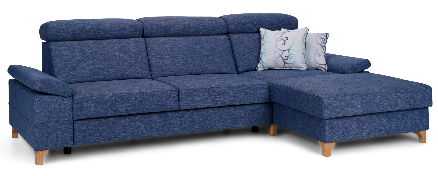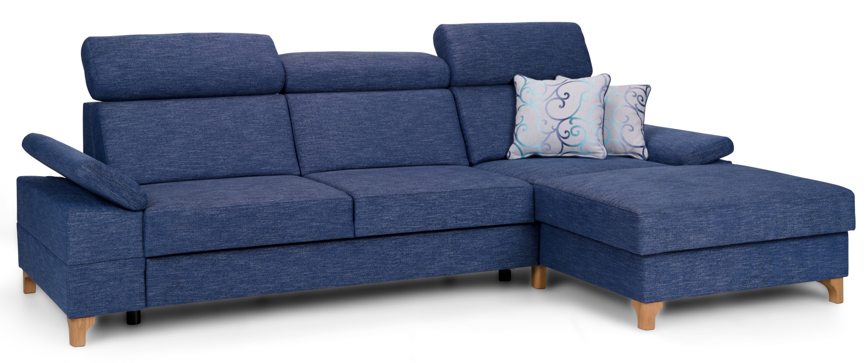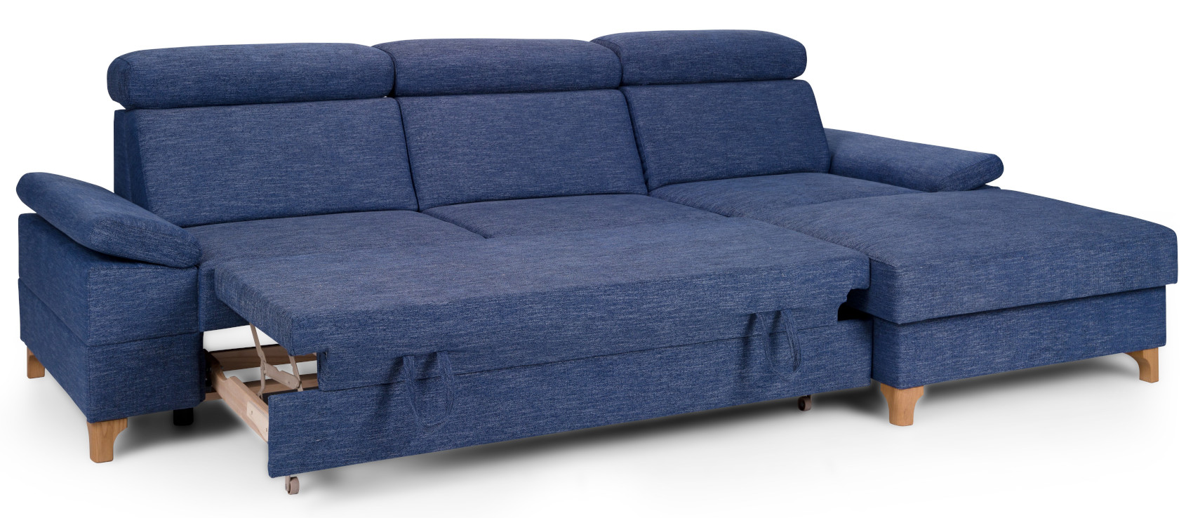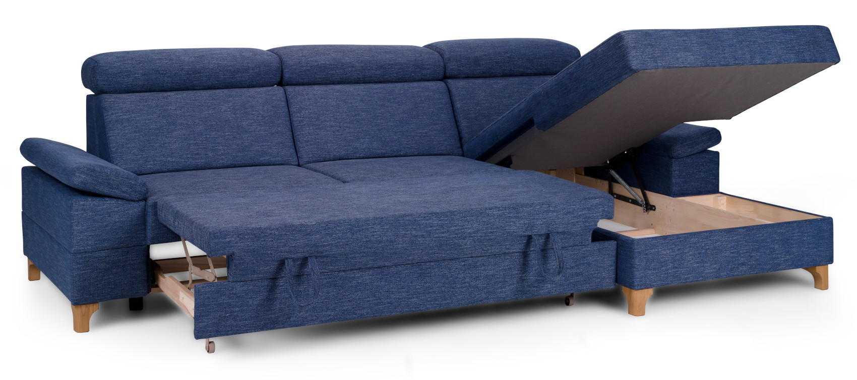 Rohová sedací souprava Luno s rozkladem a úložným prostorem z bukového dřeva