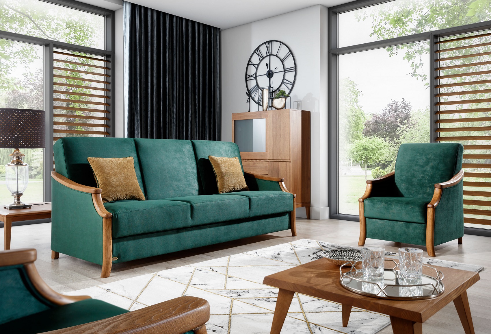 Rozkládací sedací souprava Elegant IV z bukového dřeva, 3R+1