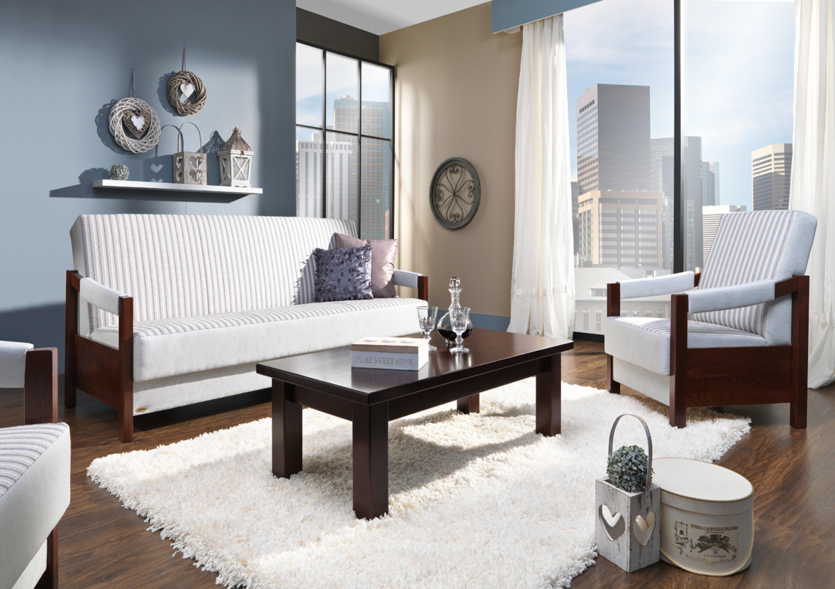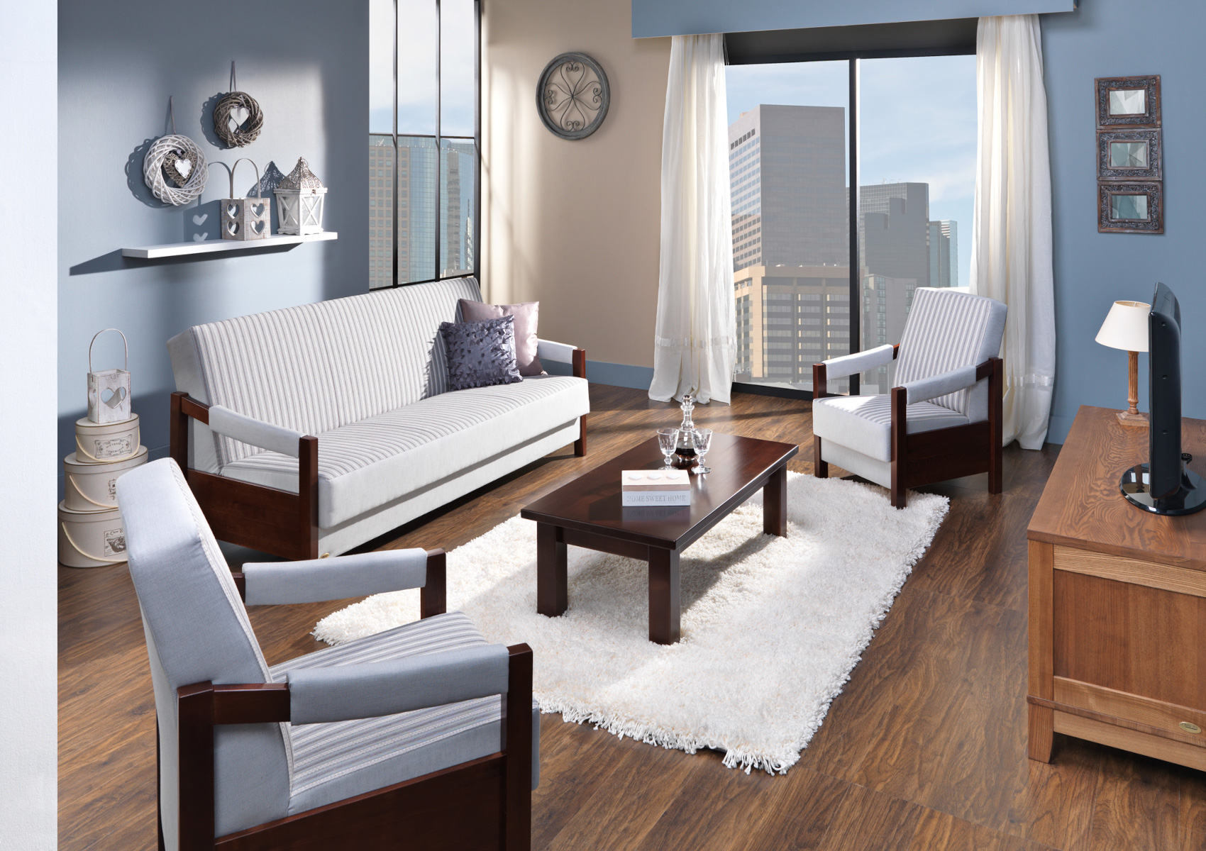 Rozkládací sedací souprava Oliwia 01 z bukového dřeva, 3R+1+1