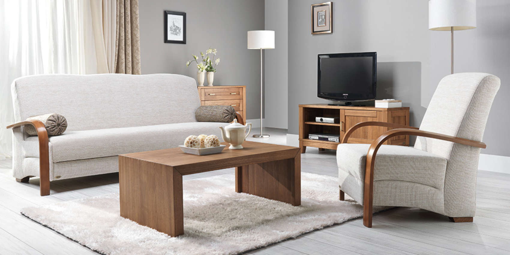 Rozkládací sedací souprava Oliwia 08 z bukového dřeva, 3R+1