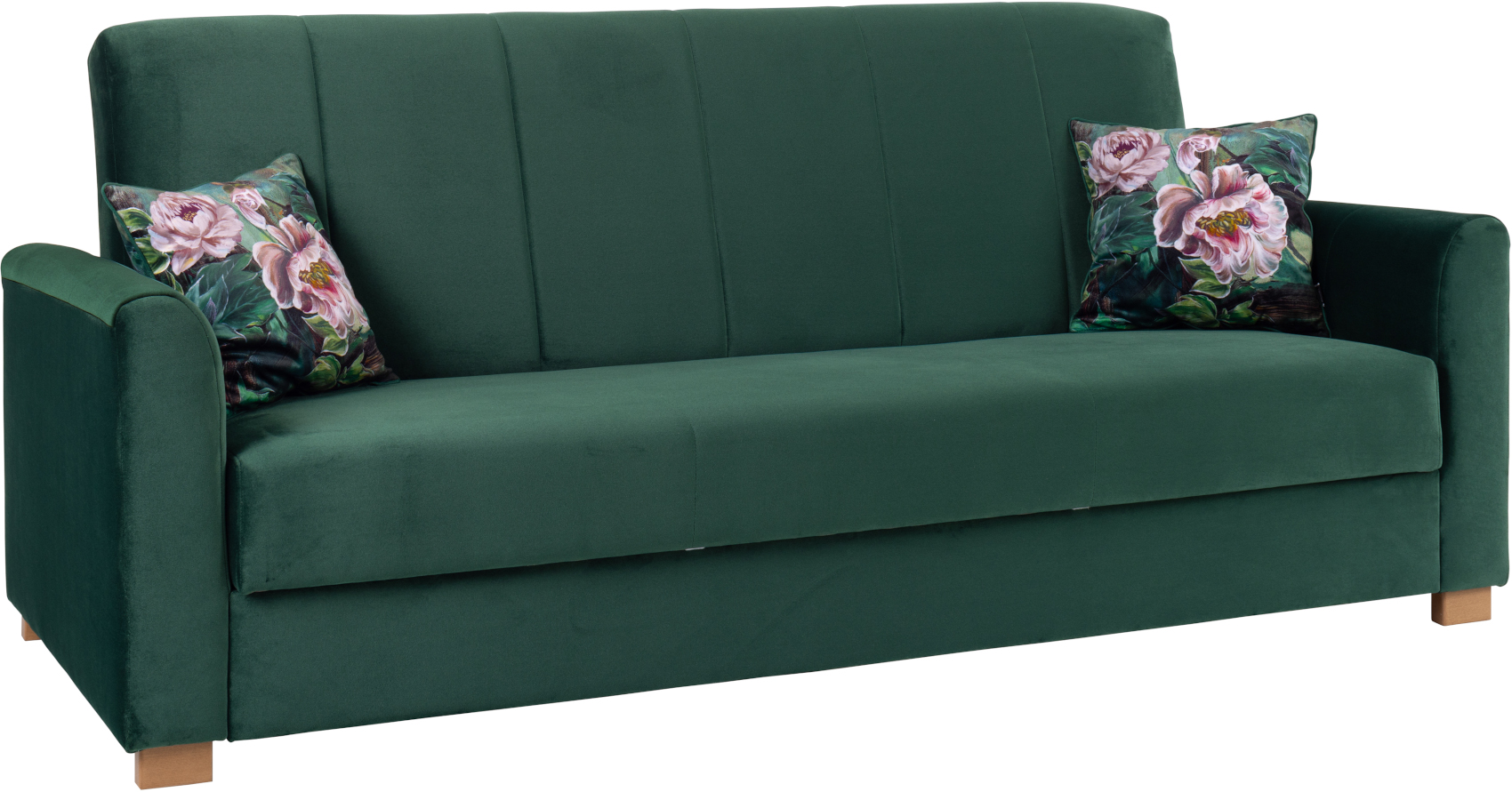 Sedací souprava vás zaujme svým elegantním designem s retro prvky. Součástí sestavy je pohovka s rozkládacím systémem určený ke spánku a prostorem k uložení ložního prádla, křeslo a taburet. Nábytek je z masivního bukového dřeva, které je odolné a vzhledem k jeho tvrdosti vám zaručí kvalitu a stabilitu.