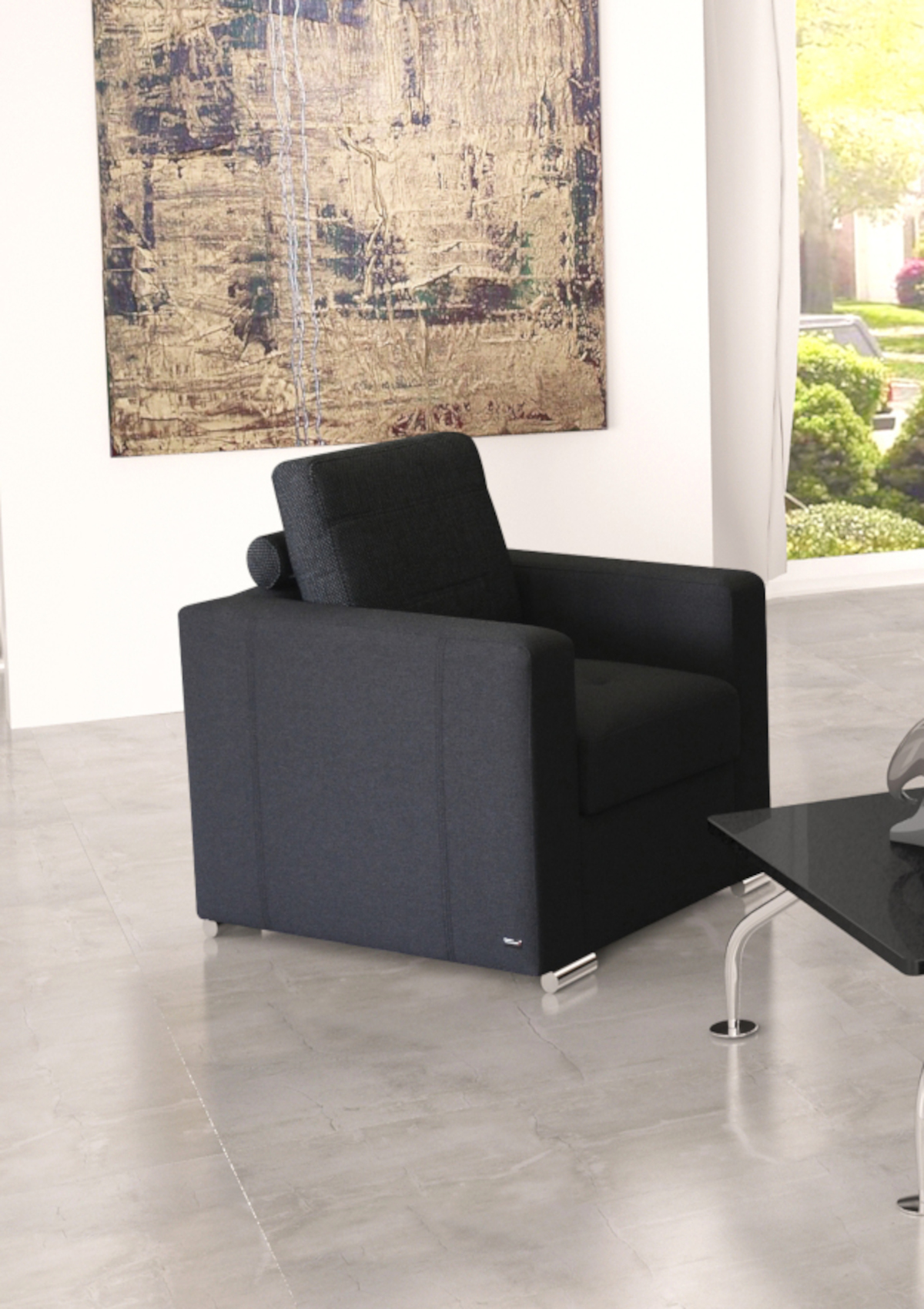 Součástí pohovky je rozkládací systémem ke každodennímu spánku a křeslo je vybaveno úložným prostorem k uložení přikrývek. Nábytek stojí na nízkých chromových nožkách ve stříbrném odstínu