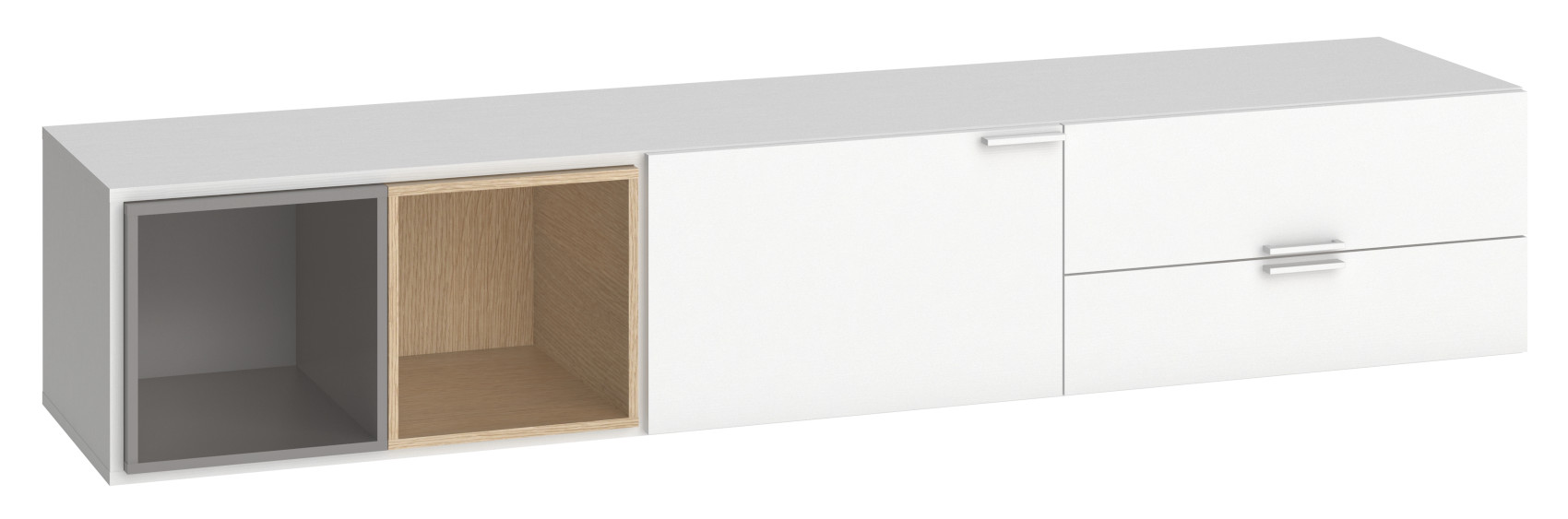 Součástí televizního stolku a regálu jsou otevřené prostory k vystavení vašich oblíbených knih, dekorací nebo rámečků s fotografiemi. Jednotlivé niky lze vyplnit také úložnými schránkami, které naleznete pod názvem úložná schránka 4You velká a úložná schránka 4You malá. V zadní části televizního stolku je připraven vývod pro kabeláž.