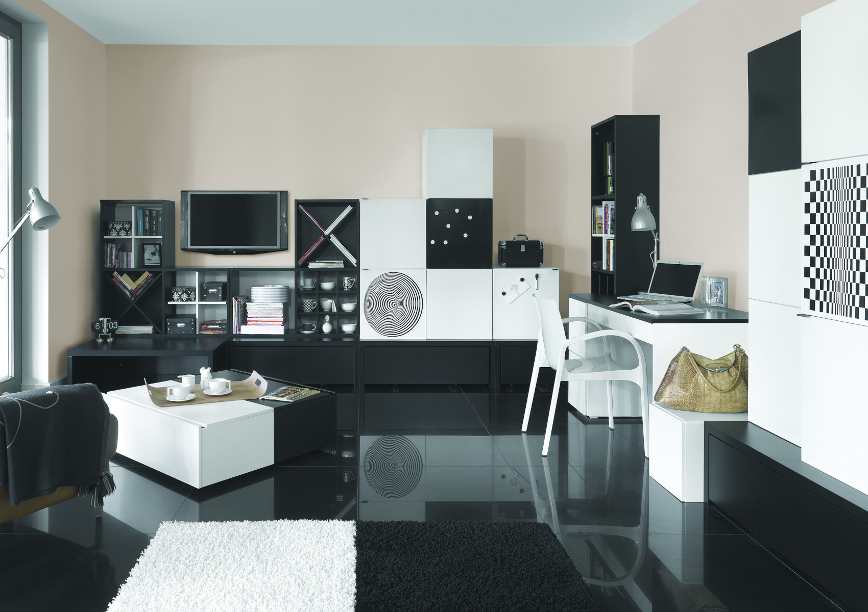 Pokoj je sestaven z jednotlivých komodit systému Young Users, ze kterých si můžete vybavit svůj vysněný interiér.
