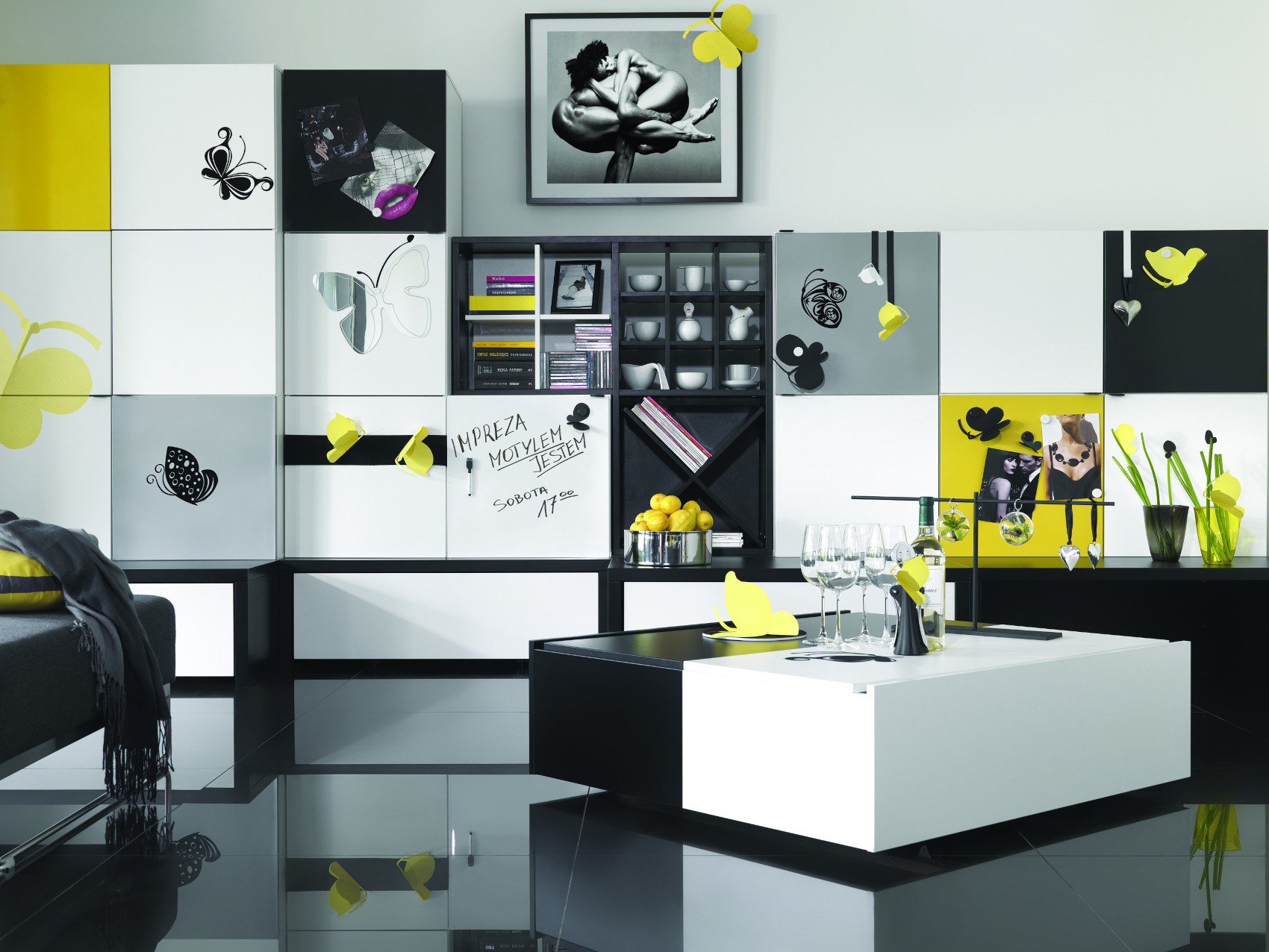 Na dvířka skříně lze připevnit barevné kovové díly nebo díly s potiskem a vytvoříte si tak svůj jedinečný design nábytku.