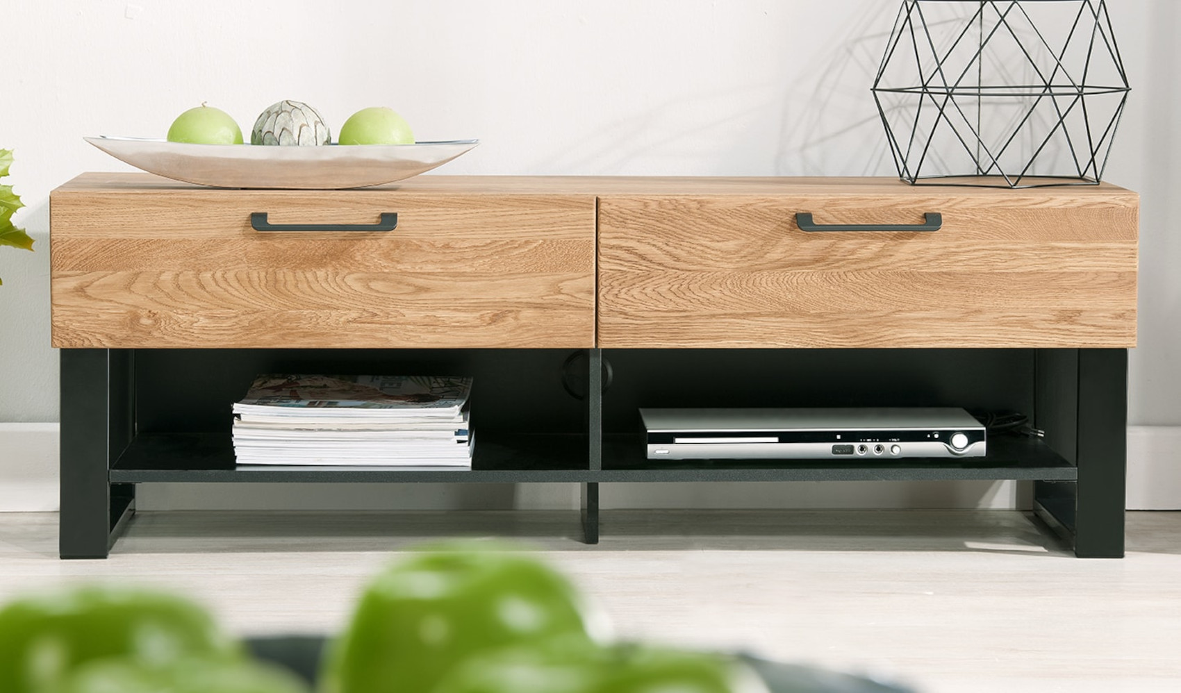 oderní RTV stolek Mosaic 24 vás zaujme svým luxusním designem se strukturou přírodního dřeva. Přední část je vyrobena z masivního dubového dřeva a korpus z přírodní dubové dýhy. Jedinečnými prvky jsou černé matné lakované detaily a úchyty.