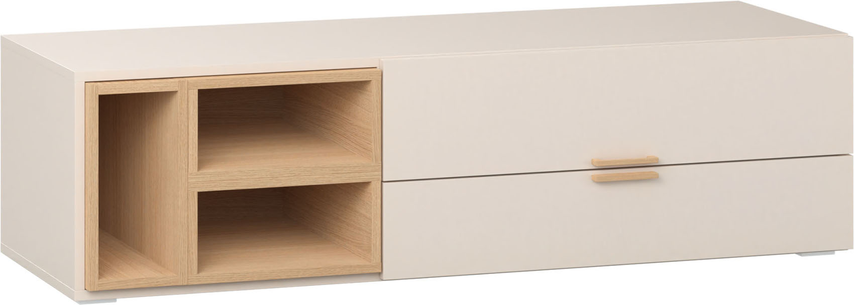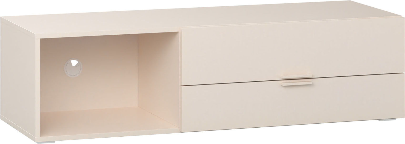 Součástí stolku jsou 2 zásuvky na kovových pojezdech. V zadní části otevřeného prostoru je připraven vývod pro kabeláž. Do niky si můžete vložit elektroniku, vystavit své oblíbené knihy, dekorace, rámečky s fotografiemi, nebo ji lze vyplnit úložnými schránkami, které naleznete pod názvem úložná schránka 4You velká a úložná schránka 4You malá.