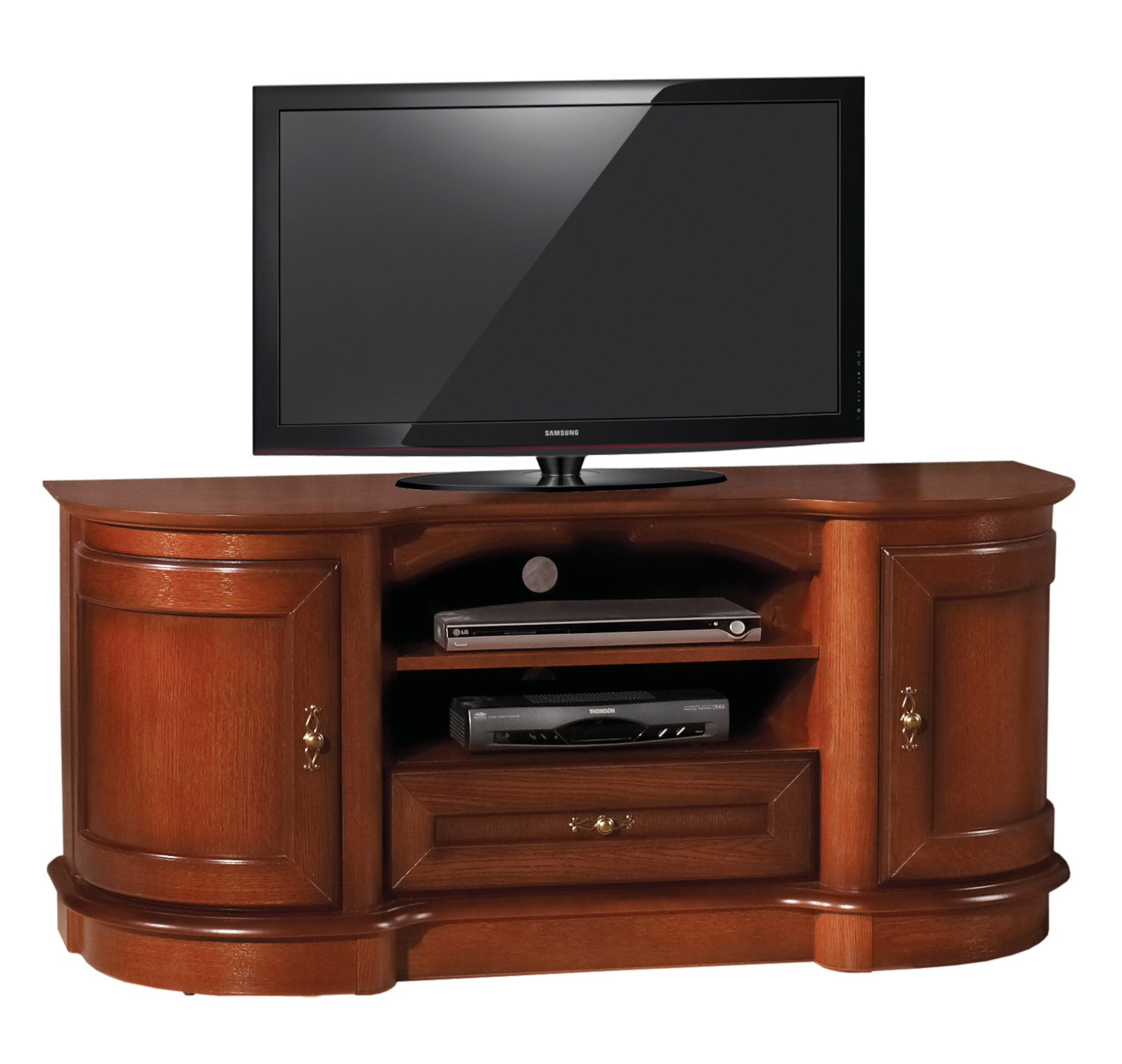 Stolek má na bočních stranách 2 plná dvířka a ve spodní části 1 zásuvku na kovových pojezdech. Nad zásuvkou je otevřená nika s 1 lakovanou policí k uložení elektroniky.