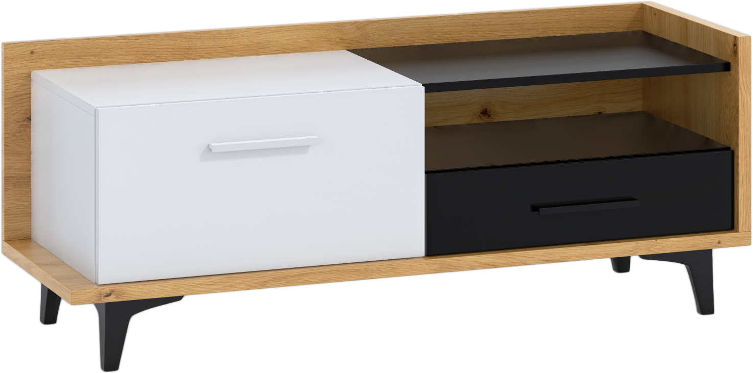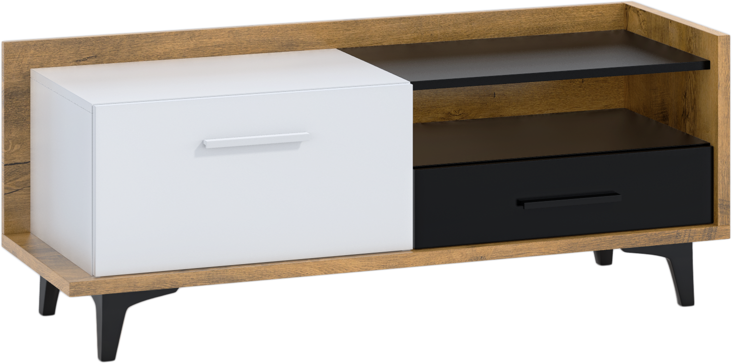 TV stolek Box dodá styl vašemu interiéru. Design je kombinací moderního stylu s retro prvky. LTD materiál, o šířce 16 mm a 25 mm, ze kterého se nábytek skládá, zajišťuje vysokou a špičkovou kvalitu. Desky mají ABS hranění, které zvyšuje odolnost proti odštípnutí hran. Dvířka i zásuvky jsou vybaveny systémem tichého dovírání. Retro nádech kolekci Box dodávají 12 cm vysoké nožky, které nejen dobře vypadají, ale také vám umožní jednoduchý úklid i pod skříňkami. Nabízíme vám výběr z několika moderních dekorů.