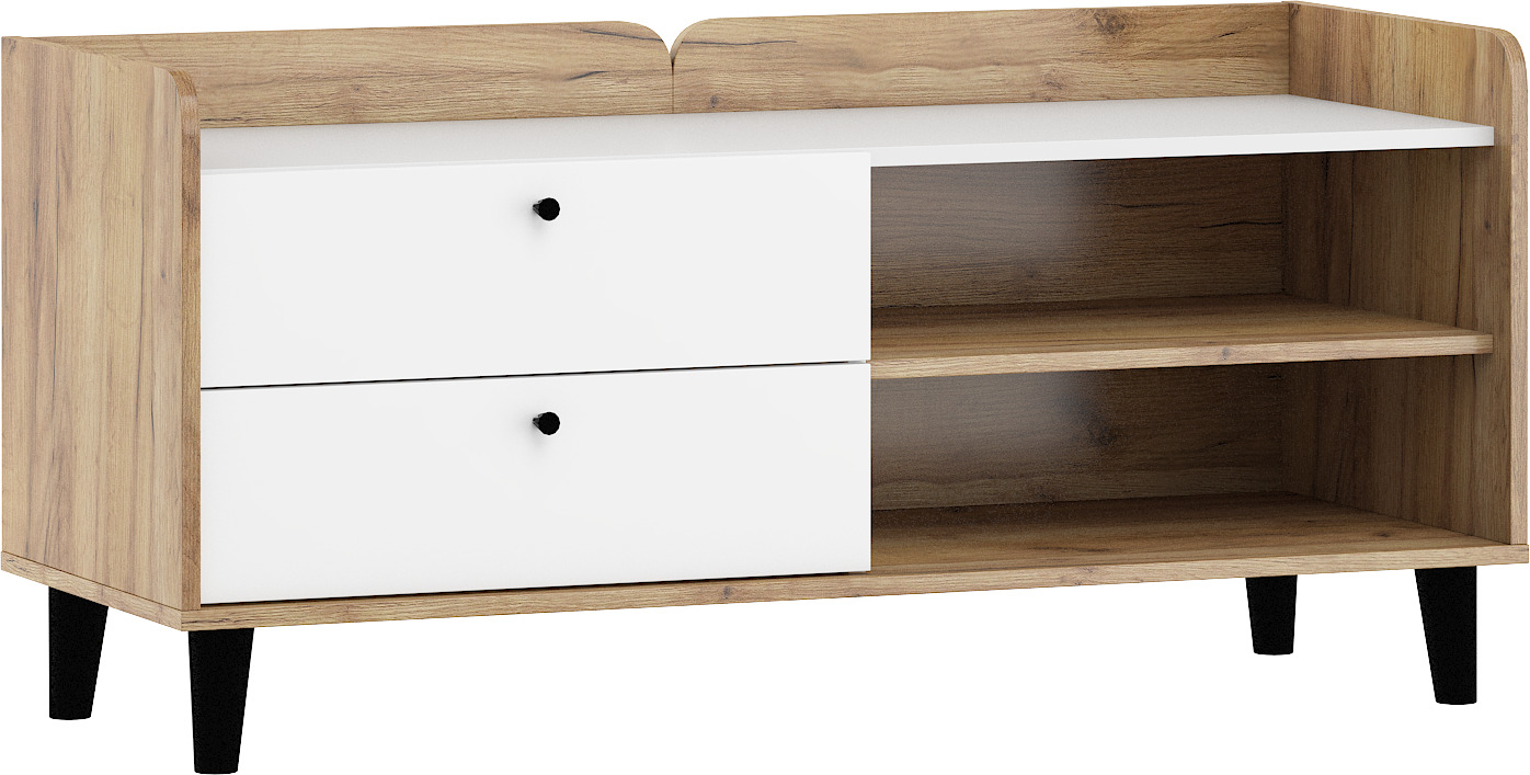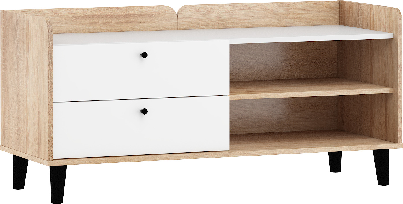 Televizní stolek Dolce 18 splňuje nároky na funkčnost i estetiku. Moderní design a kompaktní rozměry vám udělají skvělou službu také v menším interiéru. Stolek disponuje 2 praktickými zásuvkami na kovových pojezdech a policovou částí.