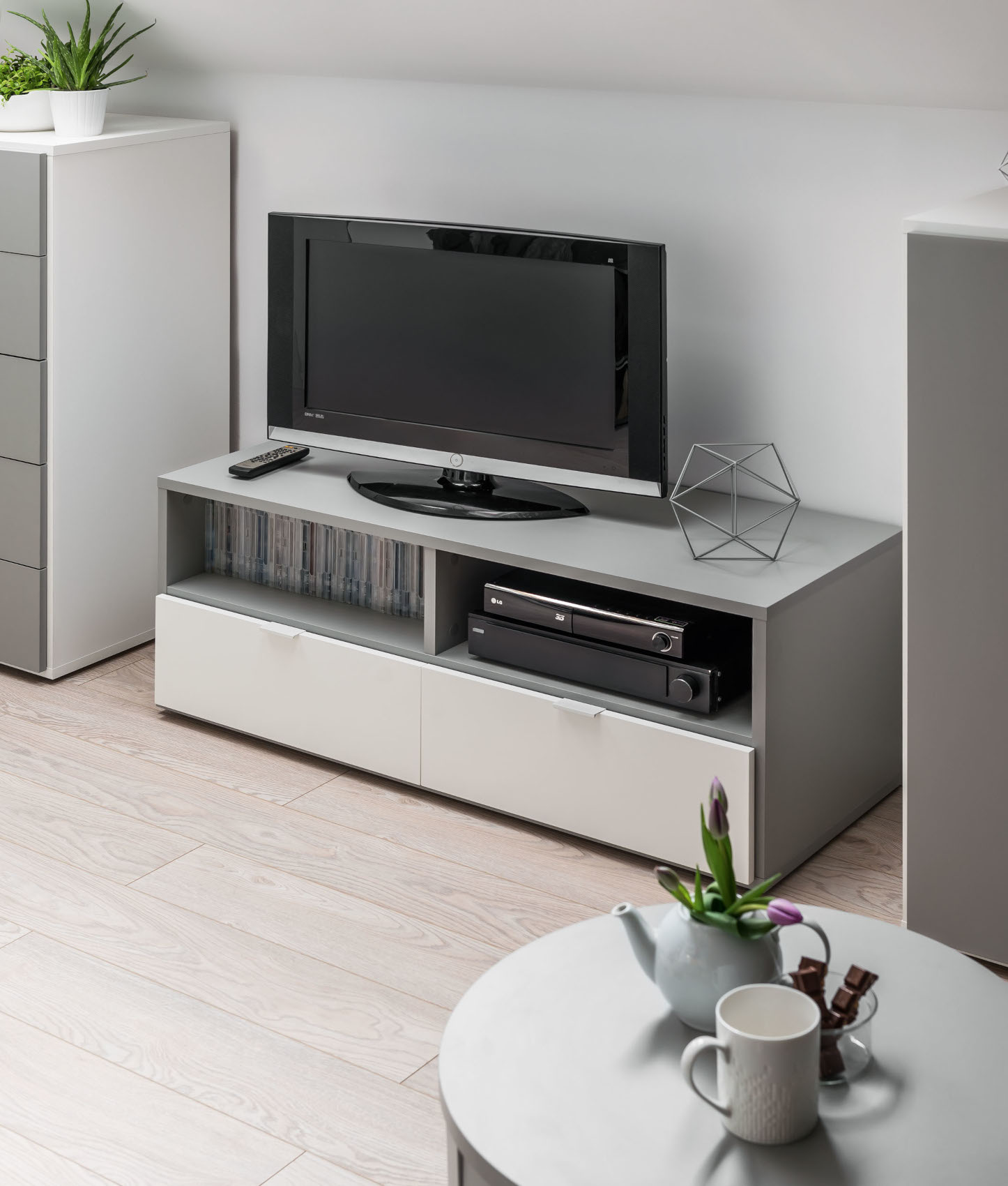 Moderní televizní stolek Simple 120 vás zaujme svým jednoduchým a zároveň luxusním designem. Tělo i přední část jsou vyrobeny z kvalitního a odolného lamina. Úchyty jsou z kovu a nohy z masivního dubového dřeva, bukového dřeva nebo kovu - je pouze na vás, jaký typ nožek si zvolíte. Zásuvky mají zabudovaný systém tichého dovírání. Nábytek Simple je jedinečný tím, že si sami zvolíte jeho barevné provedení.