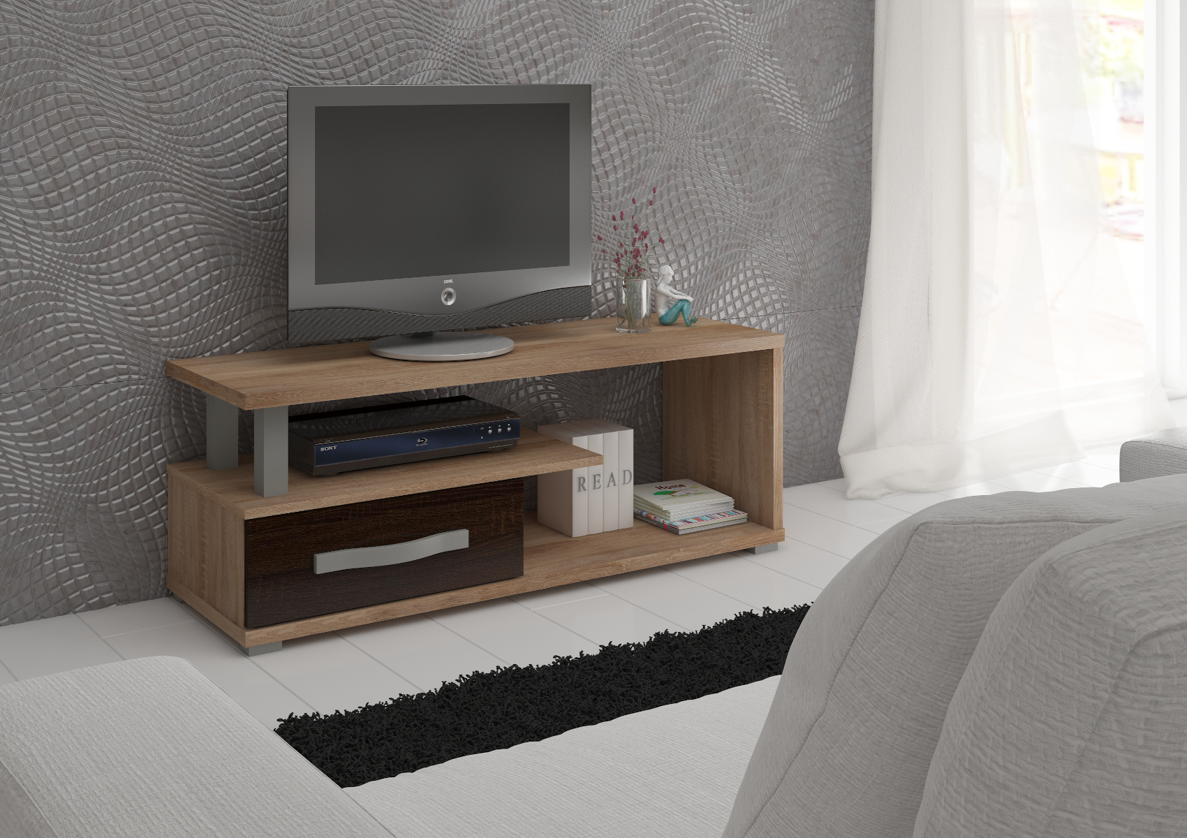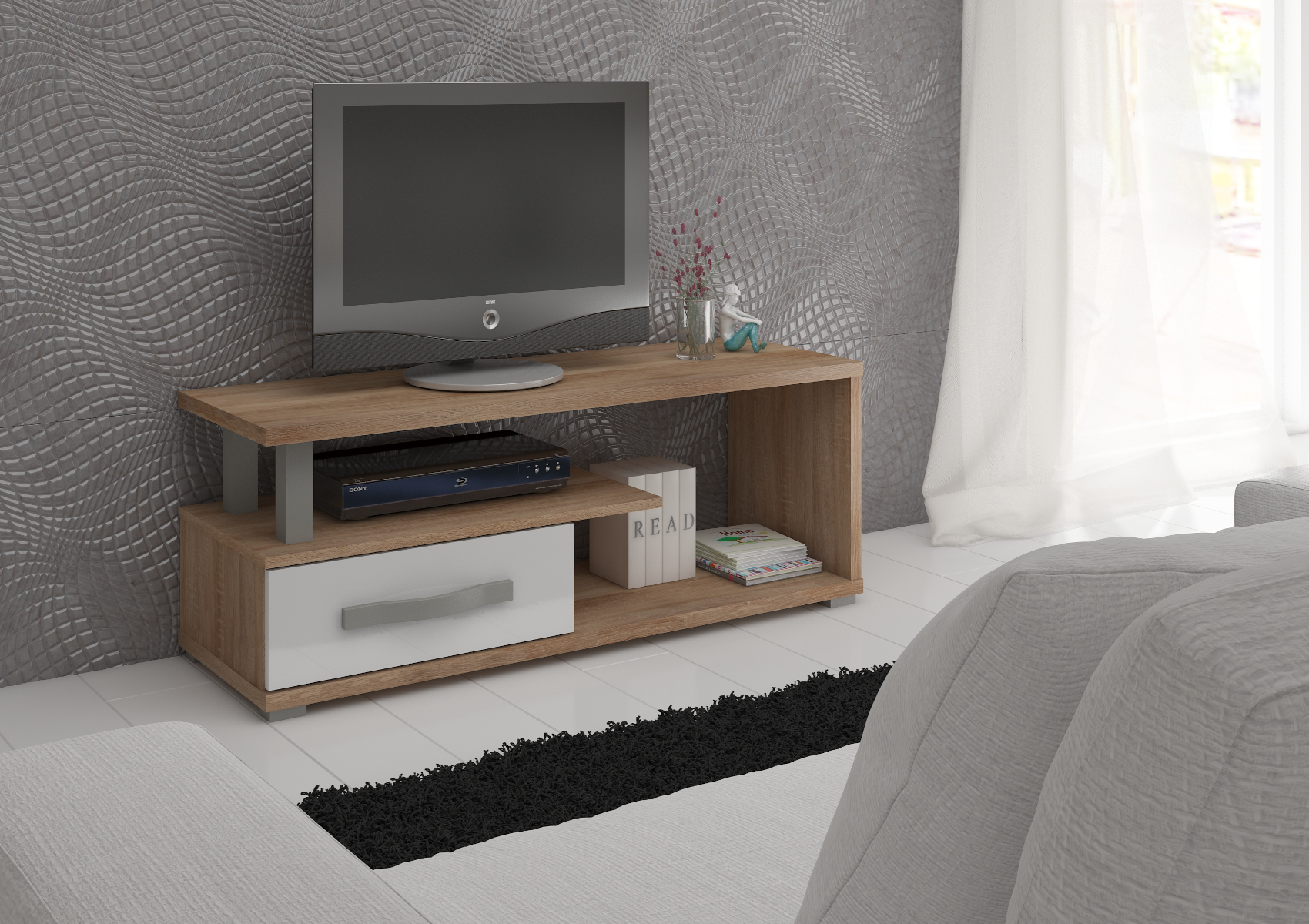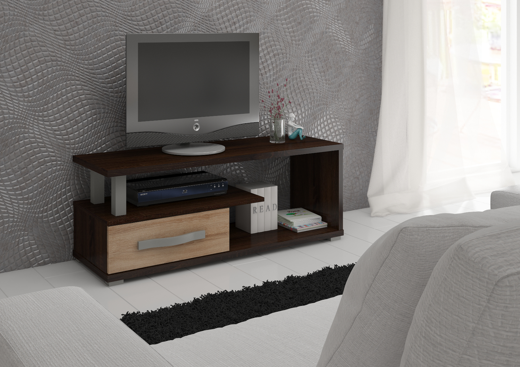 TV stolek 1D Angel 12 se skvěle hodí do moderně zařízených interiérů. Zaujme vás svým neobvyklým avšak moderním designem a přírodním provedením. Je vyroben z kvalitních lamino desek o síle 25 mm a 16 mm. Nábytek stojí na nízkých kovových nožkách. Nabízíme vám několik barevných variant. Zajímavý design barev dodává stolku ještě více na luxusu a nadčasovosti.