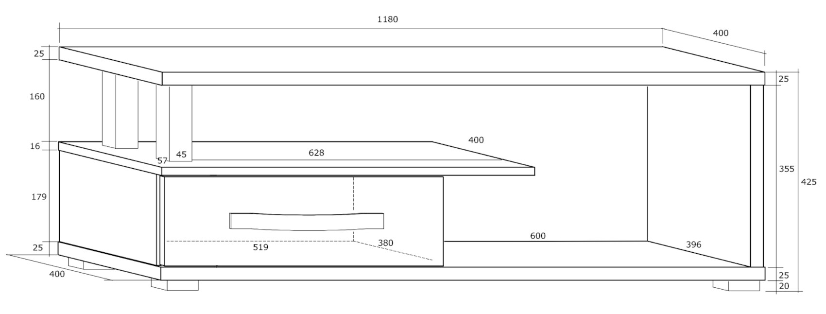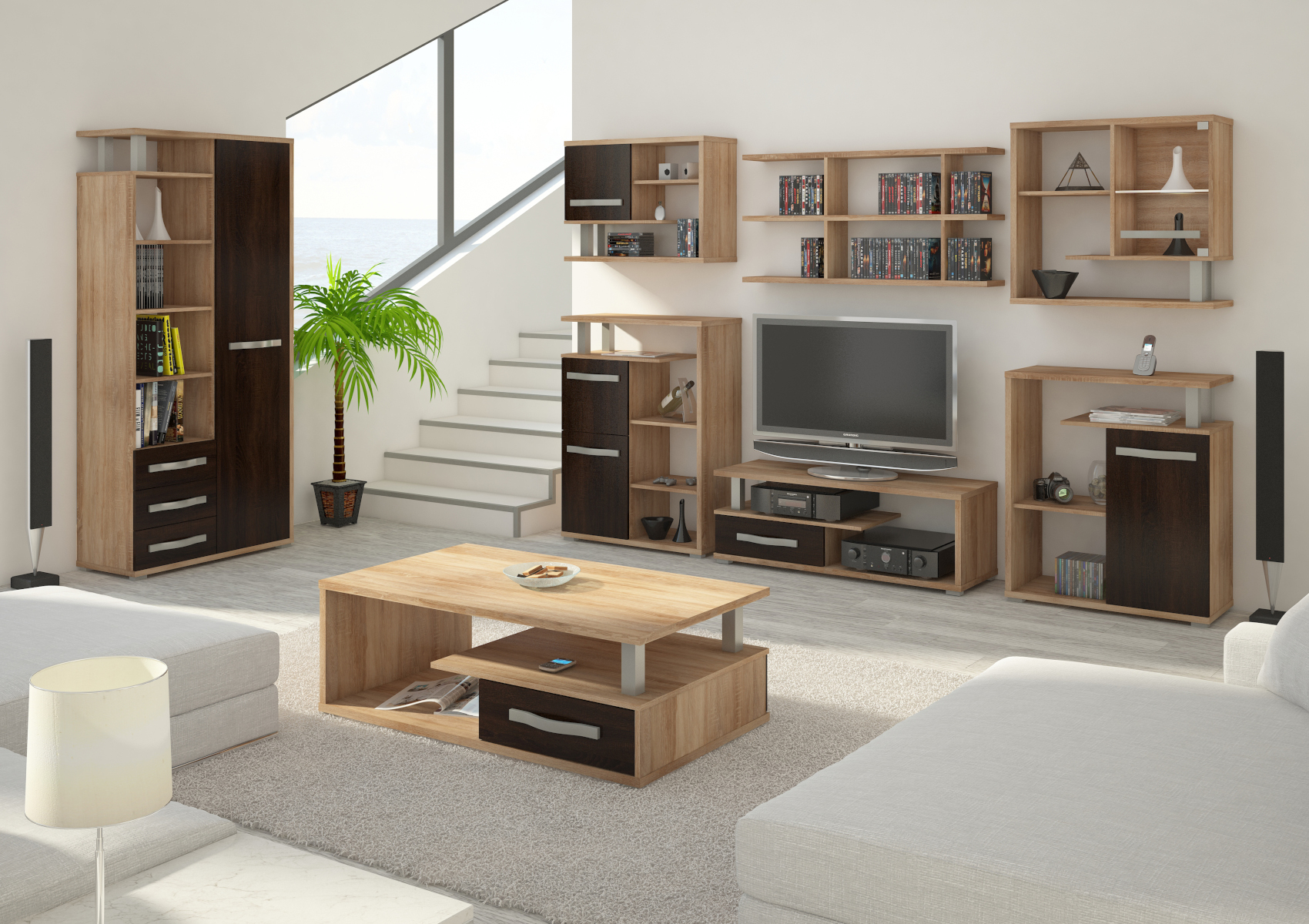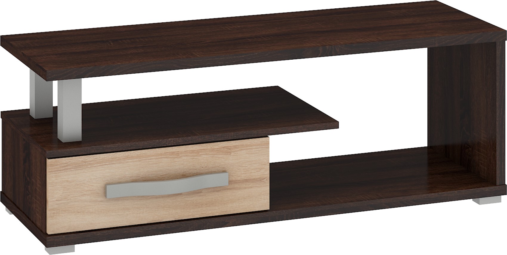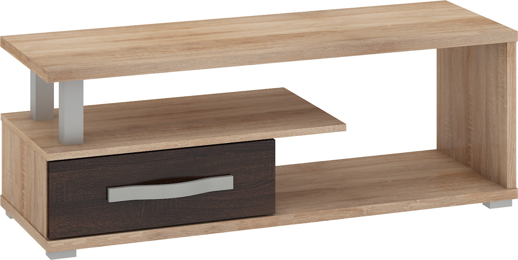 TV stolek 1D Angel 12 se skvěle hodí do moderně zařízených interiérů. Zaujme vás svým neobvyklým avšak moderním designem a přírodním provedením. Je vyroben z kvalitních lamino desek o síle 25 mm a 16 mm. Nábytek stojí na nízkých kovových nožkách. Nabízíme vám několik barevných variant. Zajímavý design barev dodává stolku ještě více na luxusu a nadčasovosti.