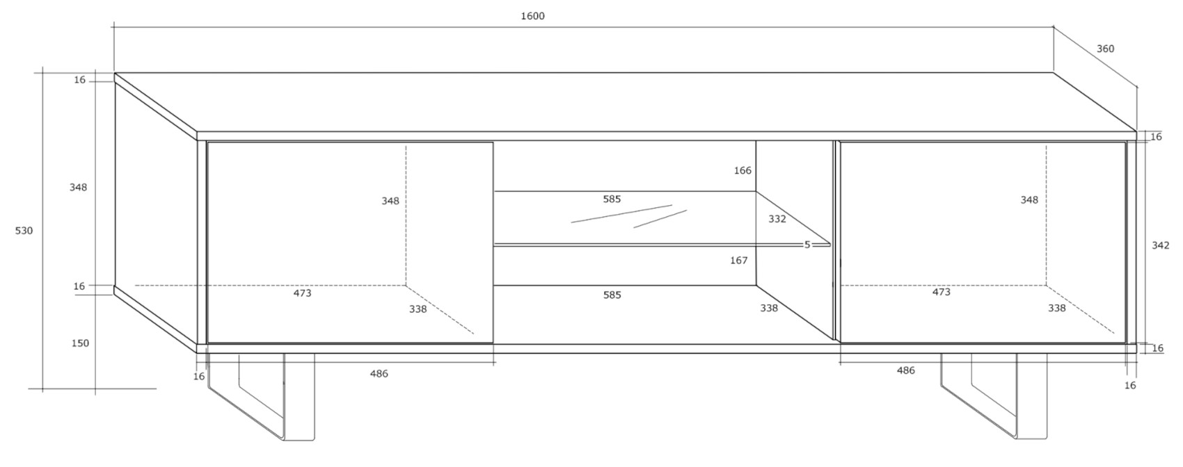 Součástí jsou 2 dvířka na obou stranách. Uprostřed je skleněná police.