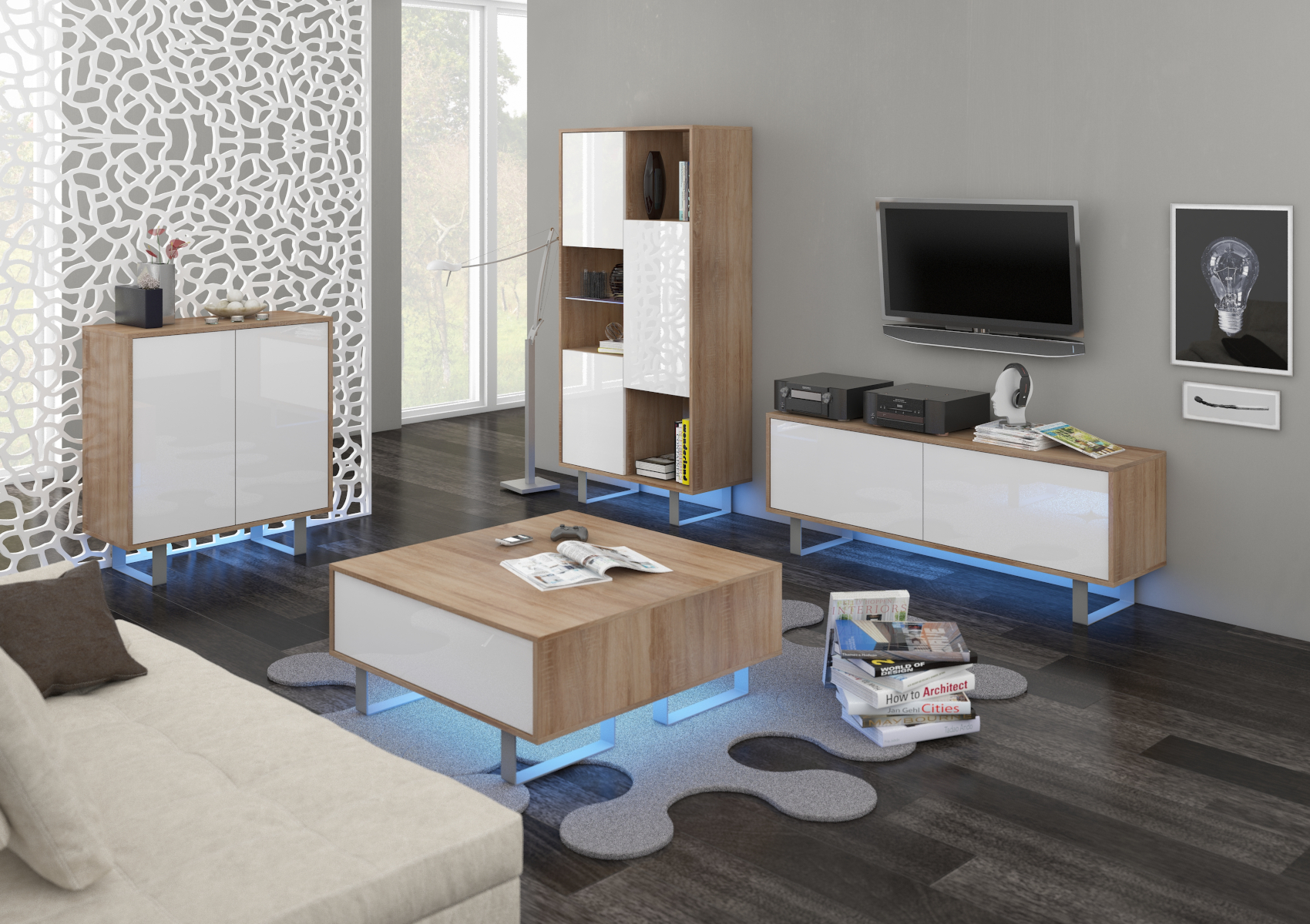 TV stolek King 02 se skvěle hodí do moderně zařízených interiérů zejména předsíní. Zaujme vás svým neobvyklým avšak moderním designem a přírodním provedením. Je vyroben z kvalitních lamino desek o síle 16 mm. Součástí zásuvek a dvířek je zabudovaný systém tichého dovírání. Nábytek stojí na 15 cm vysokých kovových nožkách. Nabízíme vám několik barevných variant. Zajímavý design barev dodává stolku ještě více na luxusu a nadčasovosti.