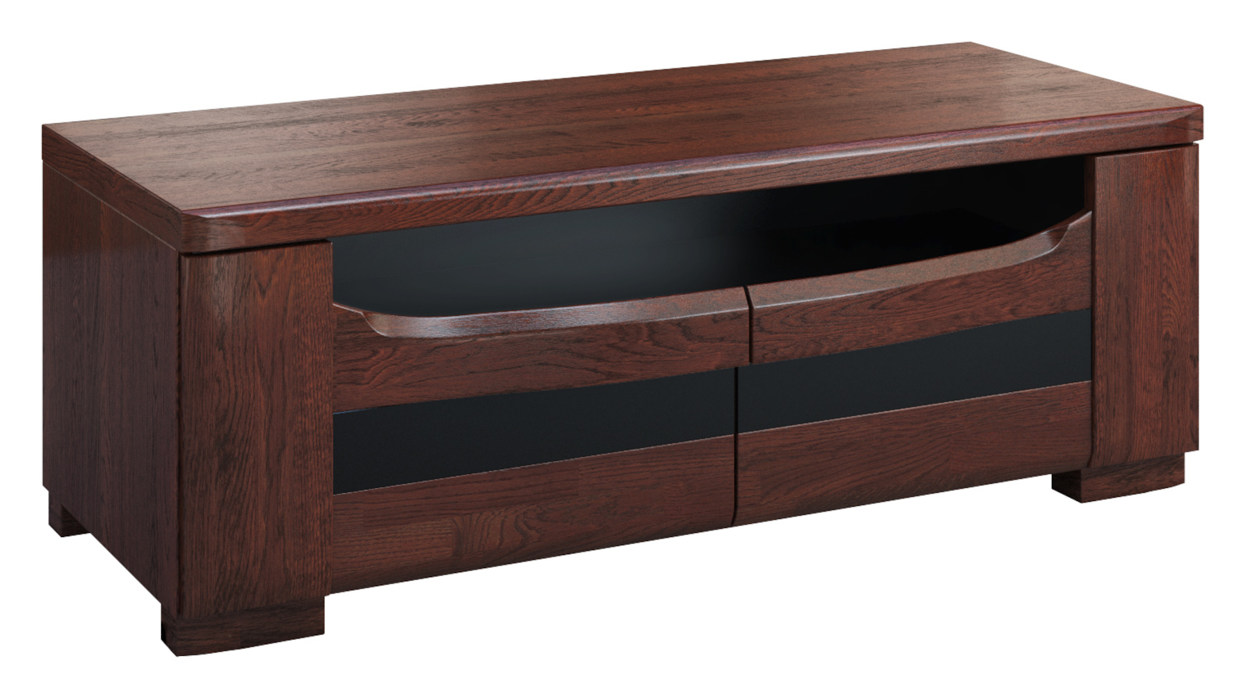 Luxusní TV stolek mini Riva je vyroben z masivního dubového dřeva a přírodní dubové dýhy s černými prvky ze skla Lacobel. Vzhledem k použitému materiálu se jedná o velmi kvalitní a stabilní nábytek. Čtyřvrstvá technologie povrchového moření a lakování dává nábytku jedinečný design s výraznou strukturou lét masivního přírodního dřeva.