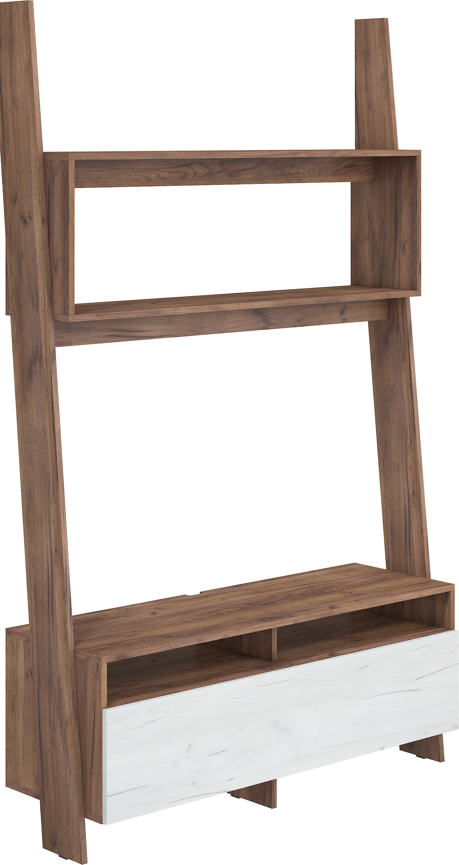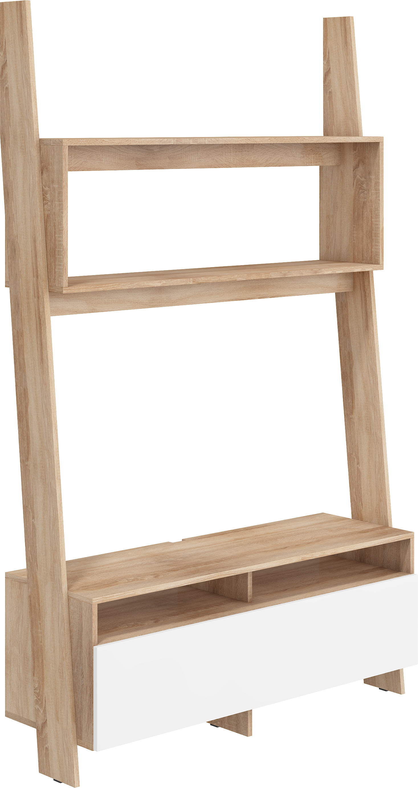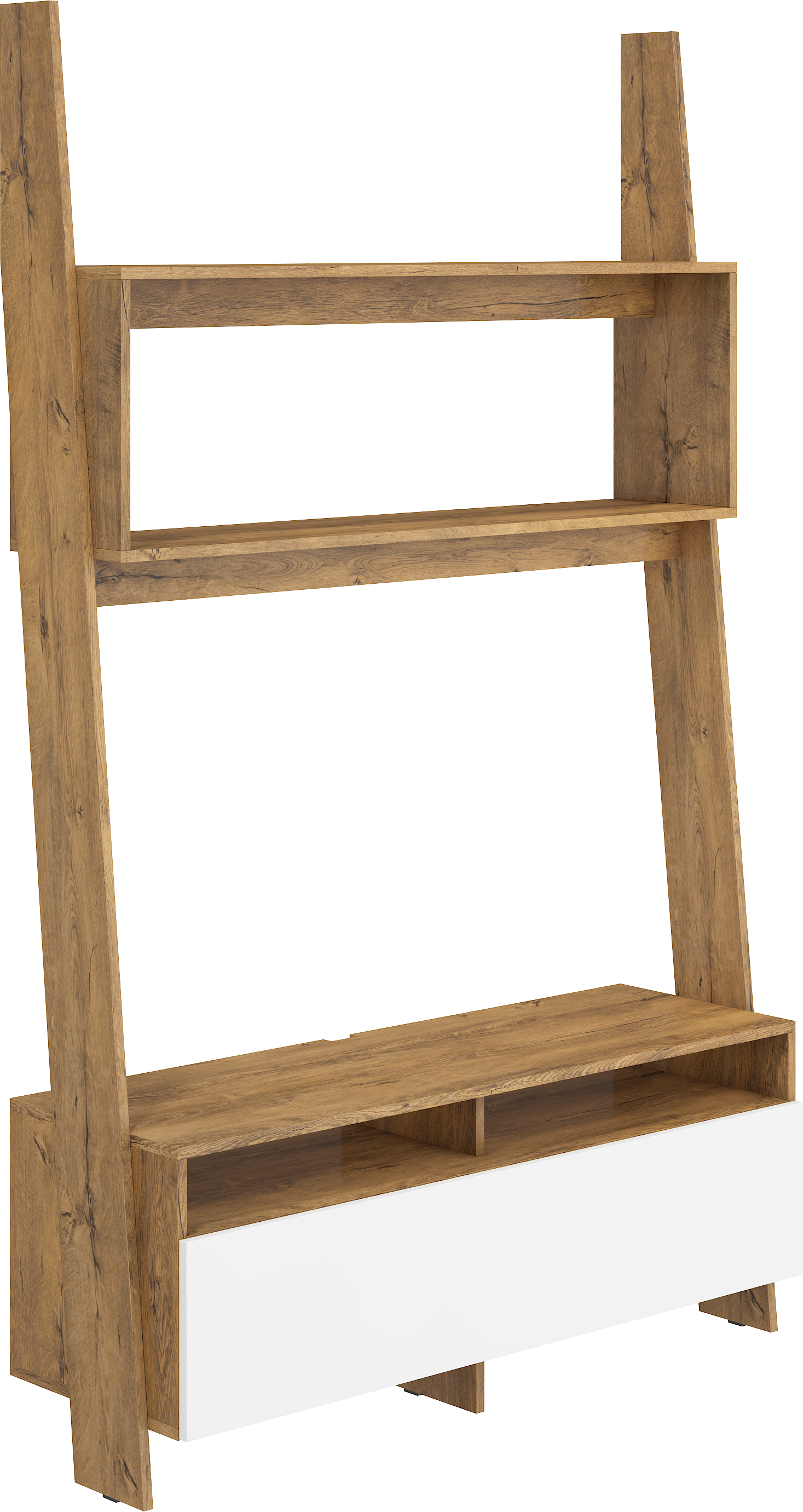 Televizní stolek Rack má ve spodní části skříňku s výklopnými dvířky. Skříňka je rozdělená svislou poličkou na 2 části. Policové prostory a polička v horní části stolku nabízí dostatek místa na knížky, fotky či vaši unikátní sbírku DVD.
