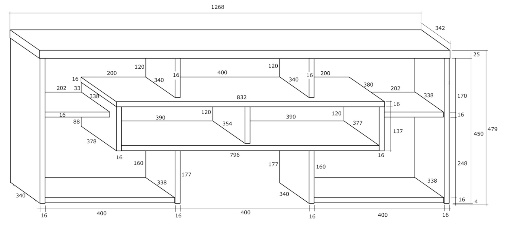 Součástí je několik otevřených nik k vystavení vašich oblíbených dekorací nebo elektroniky.