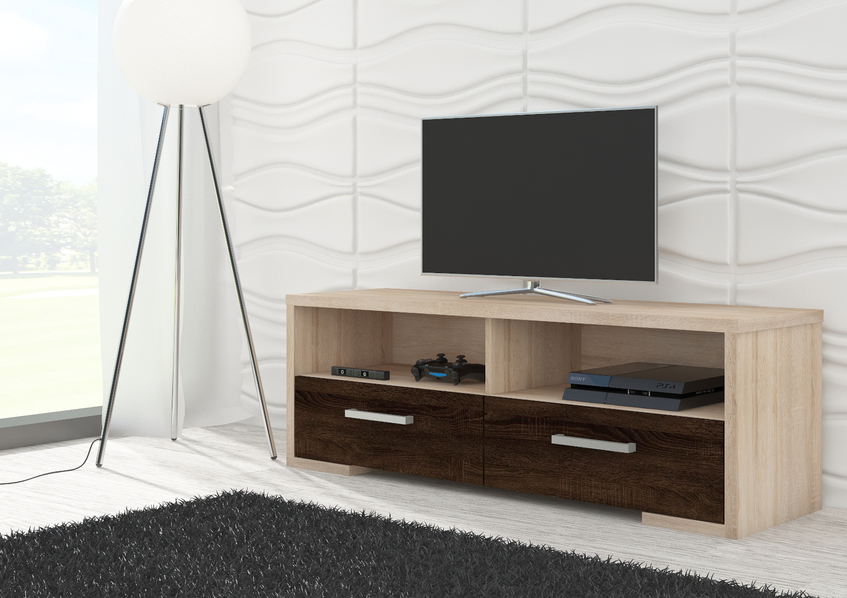 TV stolek Roma je vyroben z kvalitních LTD materiálů o síle 16 mm. Díky širokému výběru barevných odstínů skvěle zapadne snad do všech obývacích pokojů. Je vhodný především do moderních interiérů.