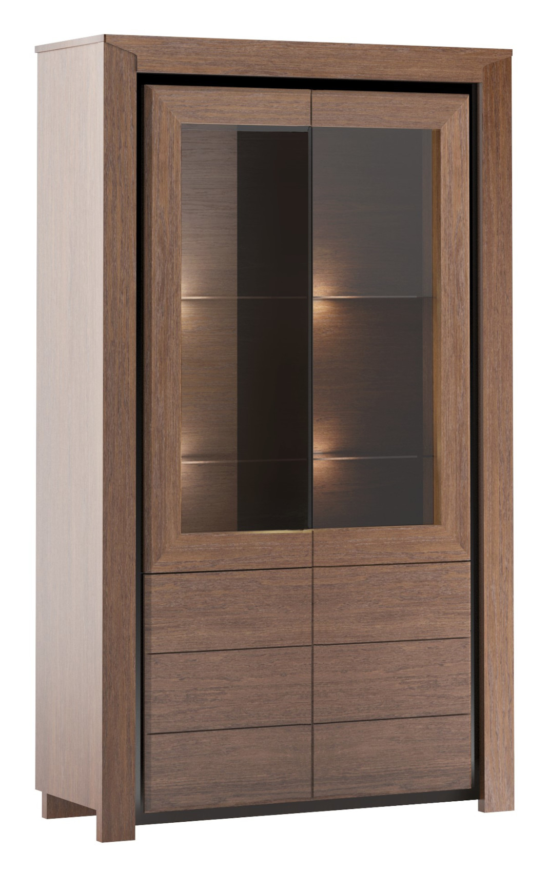 Luxusní dvojitá vitrína Sempre 2DS2D je vyrobena z masivního dubového dřeva a přírodní dubové dýhy. Vzhledem k použitému materiálu se jedná o velmi kvalitní a stabilní nábytek. Čtyřvrstvá technologie povrchového moření a lakování dává nábytku jedinečný design s výraznou strukturou lét masivního přírodního dřeva.