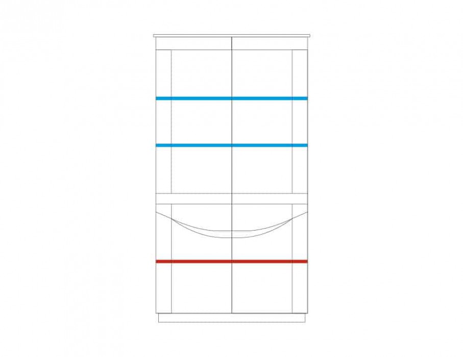 Za prosklenými dvířky jsou vloženy 2 skleněné police s LED podsvícením, které navodí příjemnou večerní atmosféru. Ve spodní části je 1 lakovaná police.
