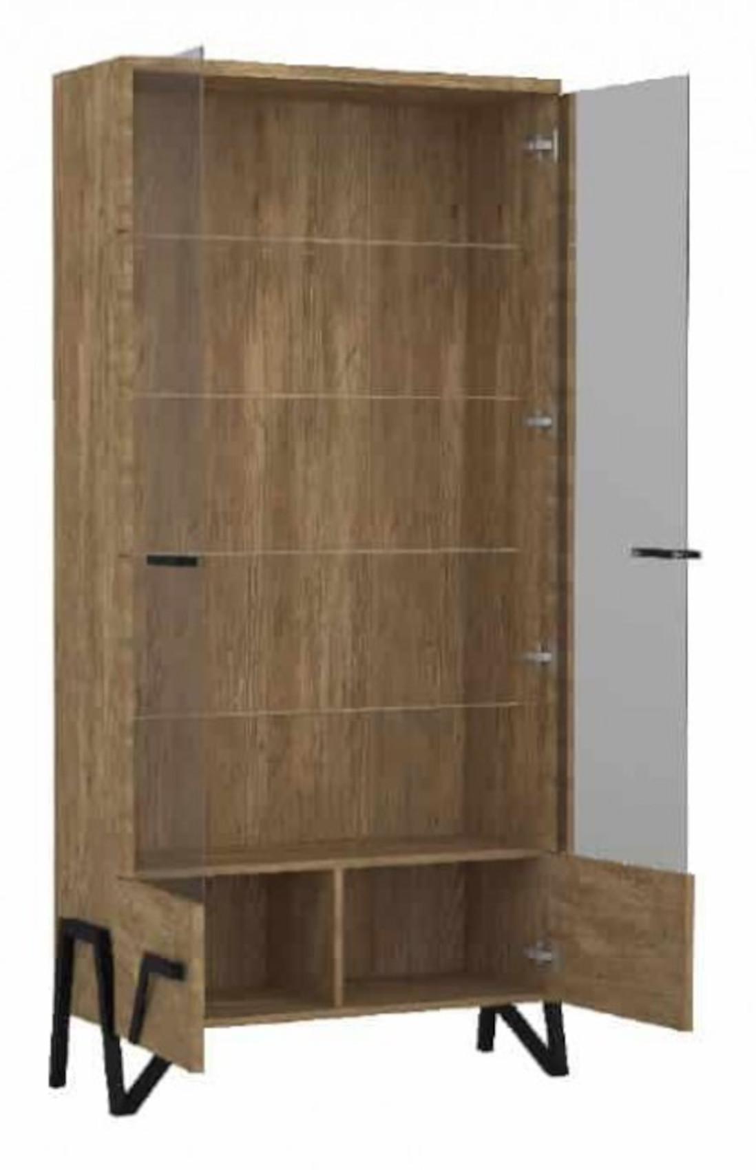 Dvojitá vitrína Pik I vás zaujme svým moderním a jednoduchým designem. Přední část nábytku je vyrobena z masivního dubového dřeva a korpus je z přírodní dubové dýhy. Kvalitní technologie lakování a moření dodává nábytku přirozený vzhled dřeva a zvýrazňuje strukturu lét. Jeho atypickými prvky jsou kovové práškově lakované nožky, které provzdušní celý prostor. Dvířka mají tiché dovírání.