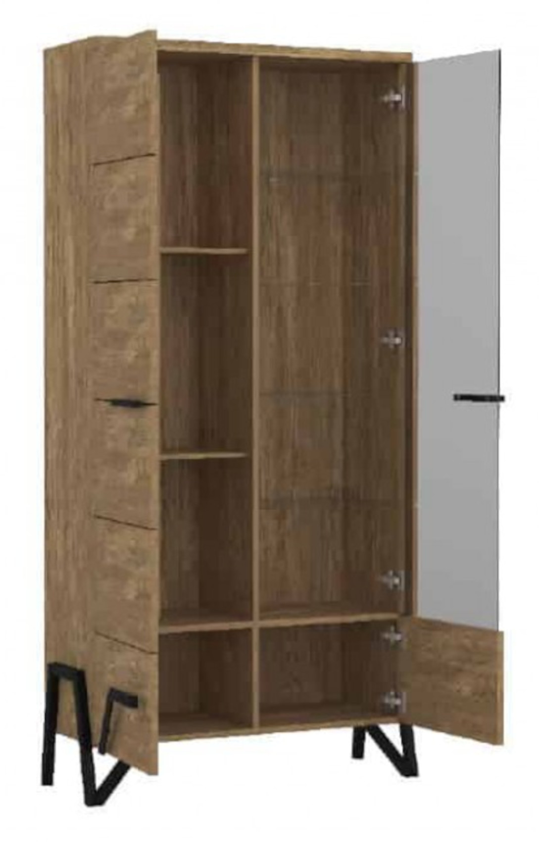 Dvojitá vitrína Pik III vás zaujme svým moderním a jednoduchým designem. Přední část nábytku je vyrobena z masivního dubového dřeva a korpus je z přírodní dubové dýhy. Kvalitní technologie lakování a moření dodává nábytku přirozený vzhled dřeva a zvýrazňuje strukturu lét. Jeho atypickými prvky jsou kovové práškově lakované nožky, které provzdušní celý prostor. Dvířka mají tiché dovírání.