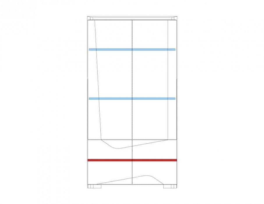 Ve vnitřním prostoru, za prosklenými dvířky, jsou vloženy skleněné police s LED osvětlením, které navodí příjemnou večerní atmosféru. Ve spodní části je 1 lakovaná police.