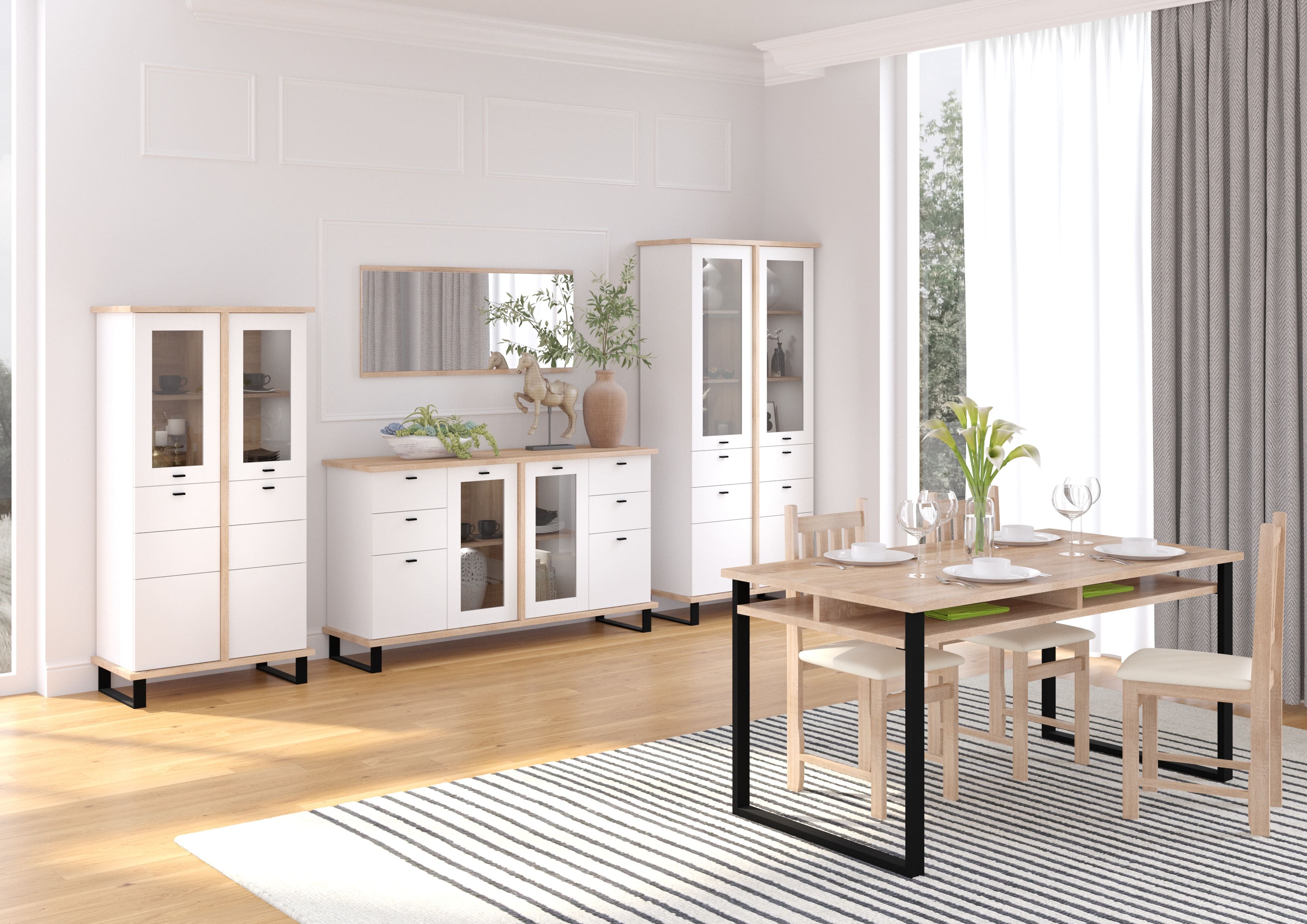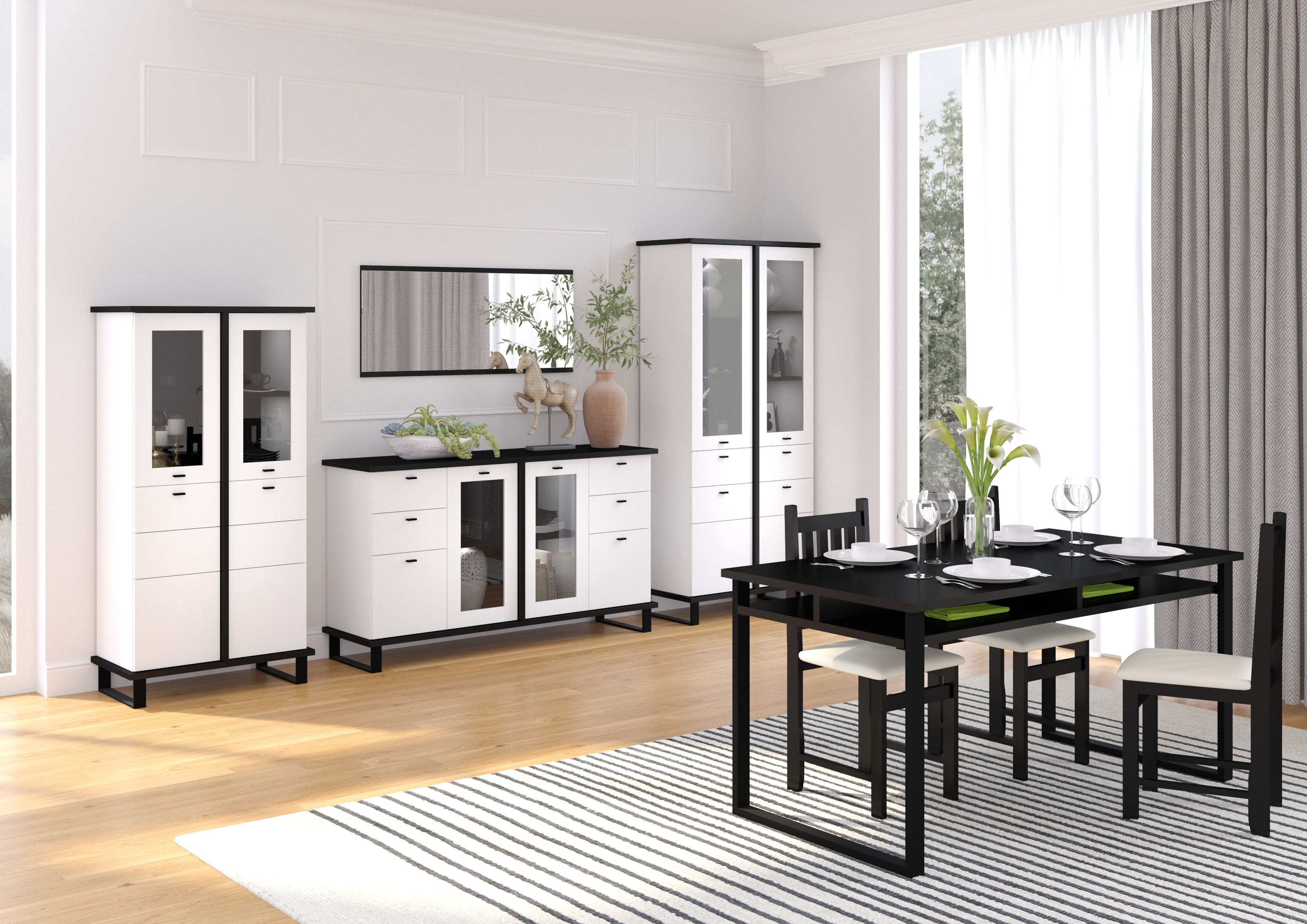 Vitríny mají kouřová skla, která ještě více zdůrazní originální vzhled systému. Černou barvou vynikají i úchyty, jež doplňují barevné kombinace reflektující moderní trendy v bydlení. S kolekcí Cross nemůžete šlápnout vedle!