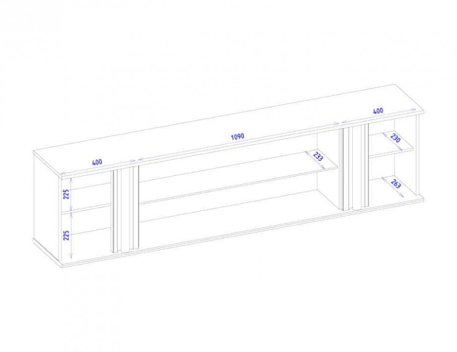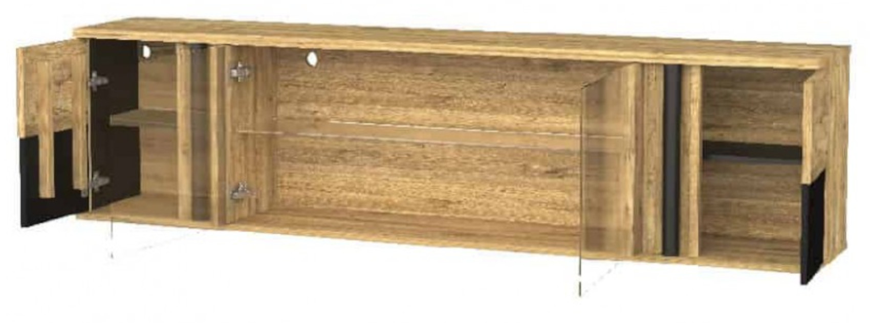 Za krajními plnými dvířky jsou 2 lakované police. Prostřední část je prosklená a uvnitř je 1 skleněné police s LED podsvícením, které dodá nábytku nádech elegance a navodí večerní intimní atmosféru.