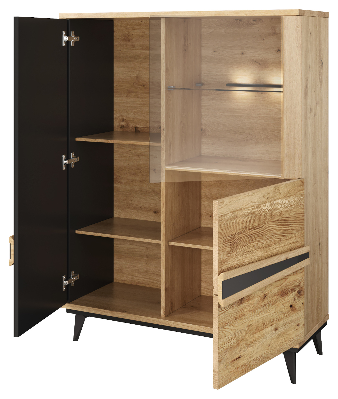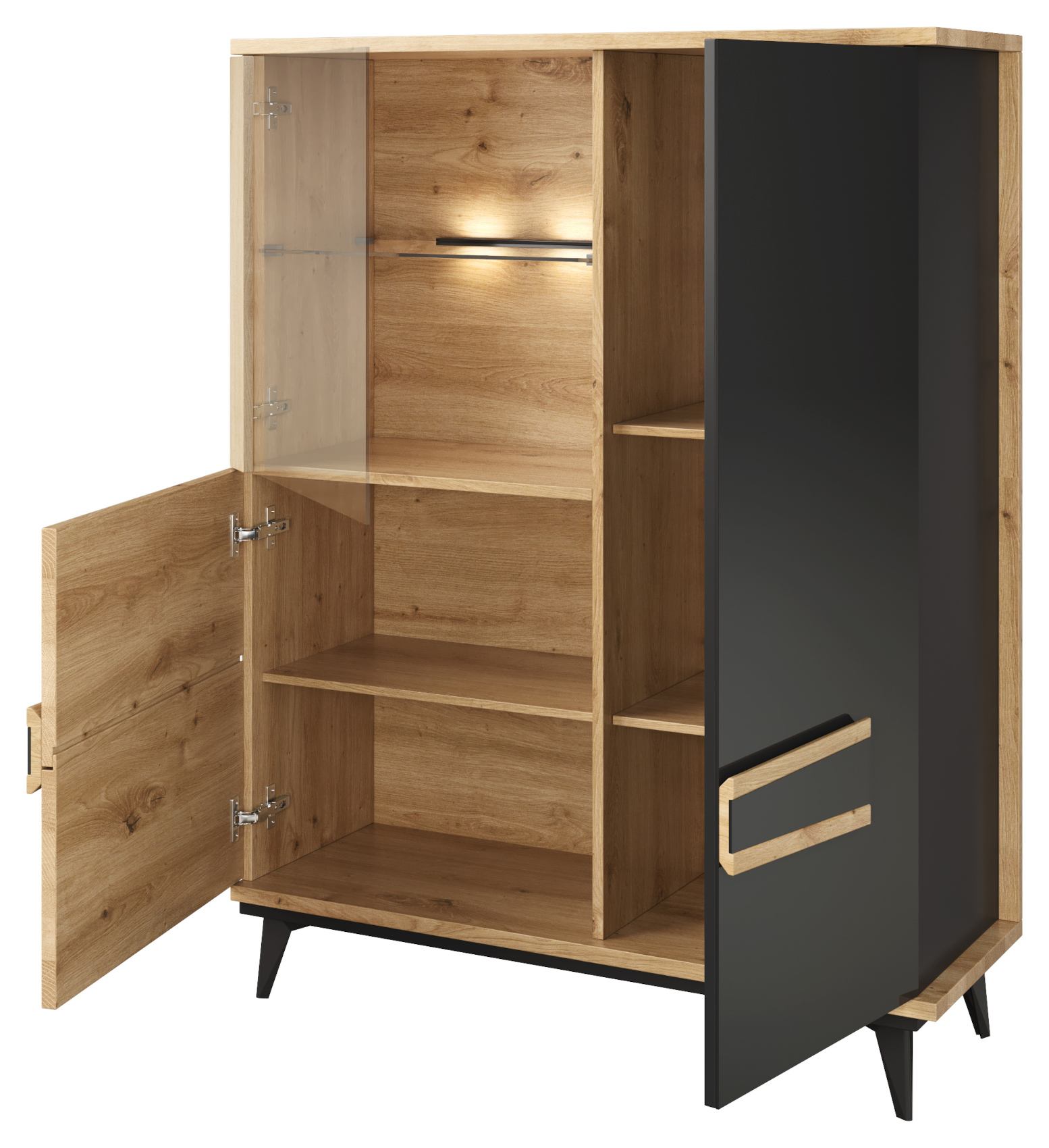 Součástí vitríny je LED osvětlení, které dodá nábytku nádech luxusu a navodí příjemnou večerní atmosféru.