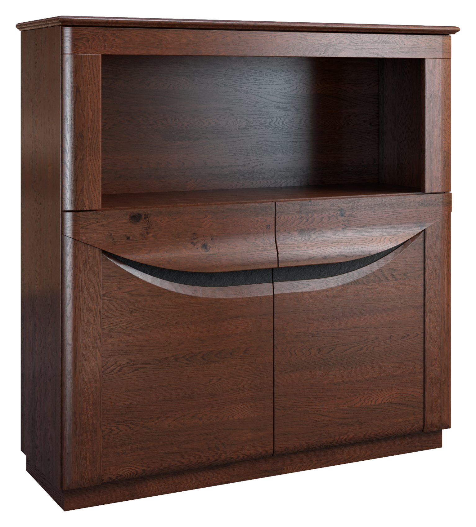 Skříňka Bari 2D s nikou vás zaujme svým elegantním designem. Je vyrobena z masivního dubového dřeva a přírodní dubové dýhy. Kvalitní lakování a moření dodává nábytku přírodní vzhled dřeva a zvýrazňuje strukturu lét. Jedinečným prvkem celé kolekce jsou vyřezávané dekorační prvky na dvířkách v 5 odstínech - burgundský dub, beton, rez, černá (magma) a ocel.