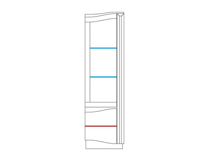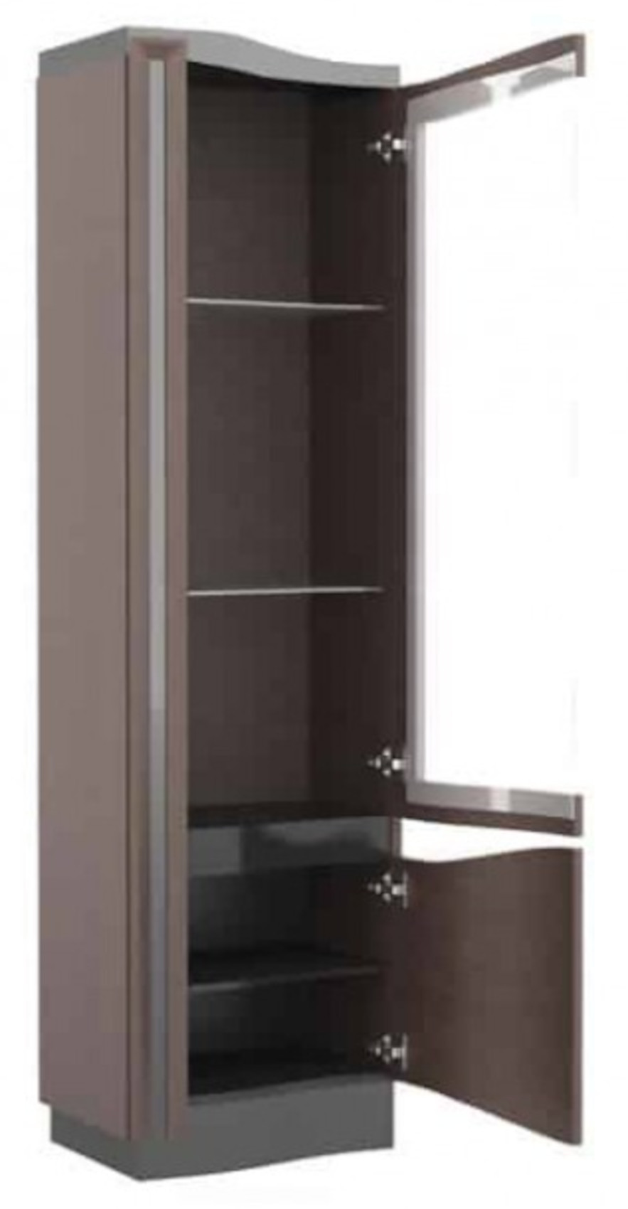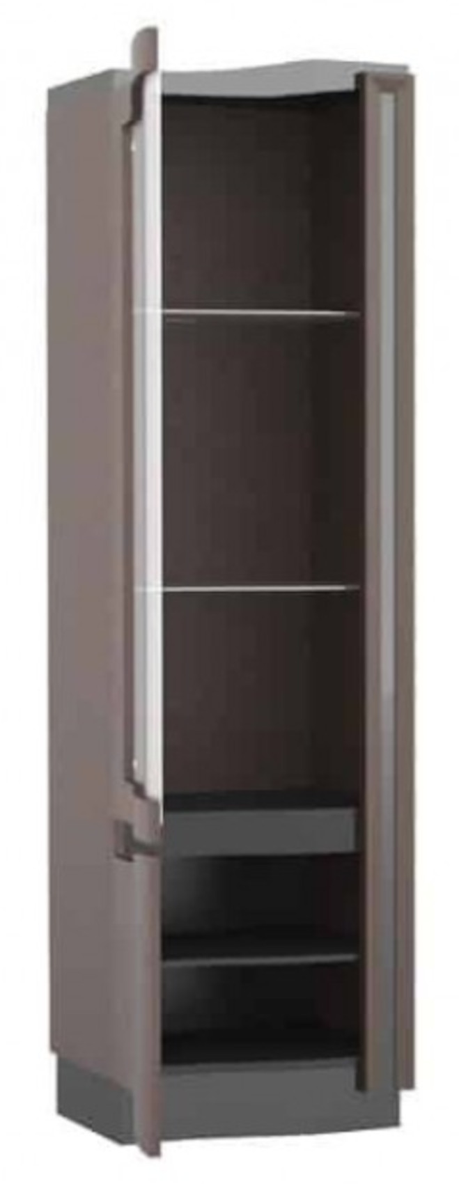 V horní prosklené části vitríny jsou vloženy 2 skleněné police s LED podsvícením. Osvětlení dodá nábytku nádech luxusu a zpříjemní vám večerní atmosféru. Za spodními plnými dvířky je 1 lakovaná police.