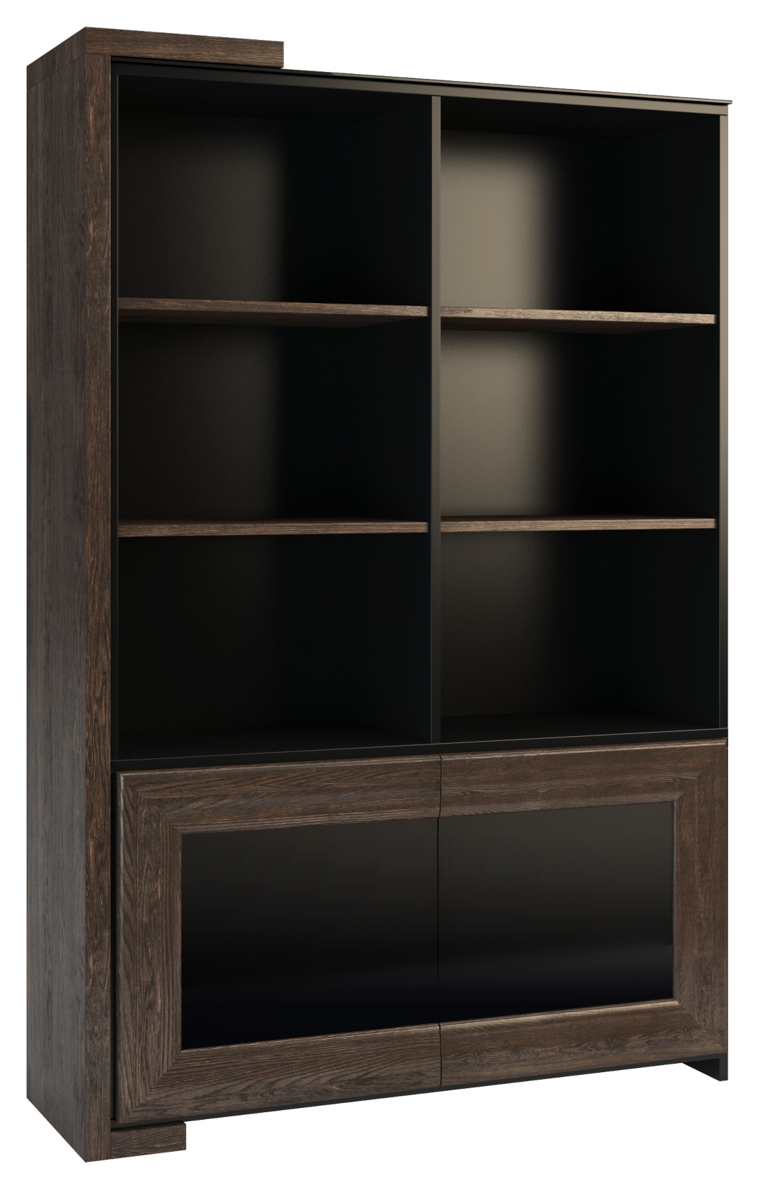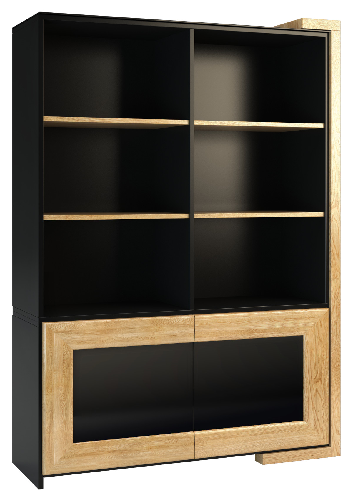 Vitrína Corino 2DS vás zaujme moderním a luxusním designem. Systémový nábytek Corino je jedinečný svými přesnými geometrickými tvary a černým ohraničením ze skla Lacobel. Vitrína je vyrobena z masivního dubové dřeva s černými lakovanými detaily. Díky kvalitnímu lakování a moření má nábytek přírodní vzhled masivního dřeva a jsou viditelné struktury lét. Máte na výběr ze 2 barevných variant.