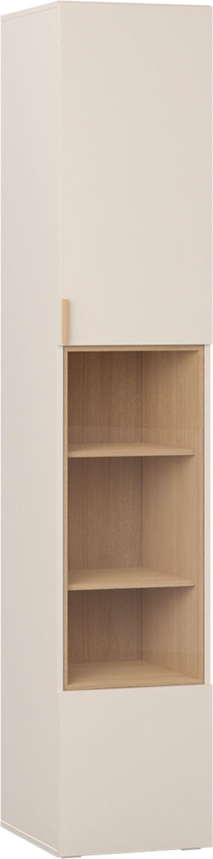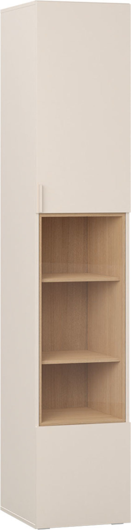 Vitrína 4You vás zaujme svým moderní designem. Je vyrobena z kvalitního lamina o síle 16 mm a 22 mm, které je odolné vůči poškrábání a nečistotám. Dvířka mají zabudovaný systém tichého dovírání. V naší nabídce naleznete 2 odstíny - bílá a písková béžová v kombinaci s přírodním dubem.