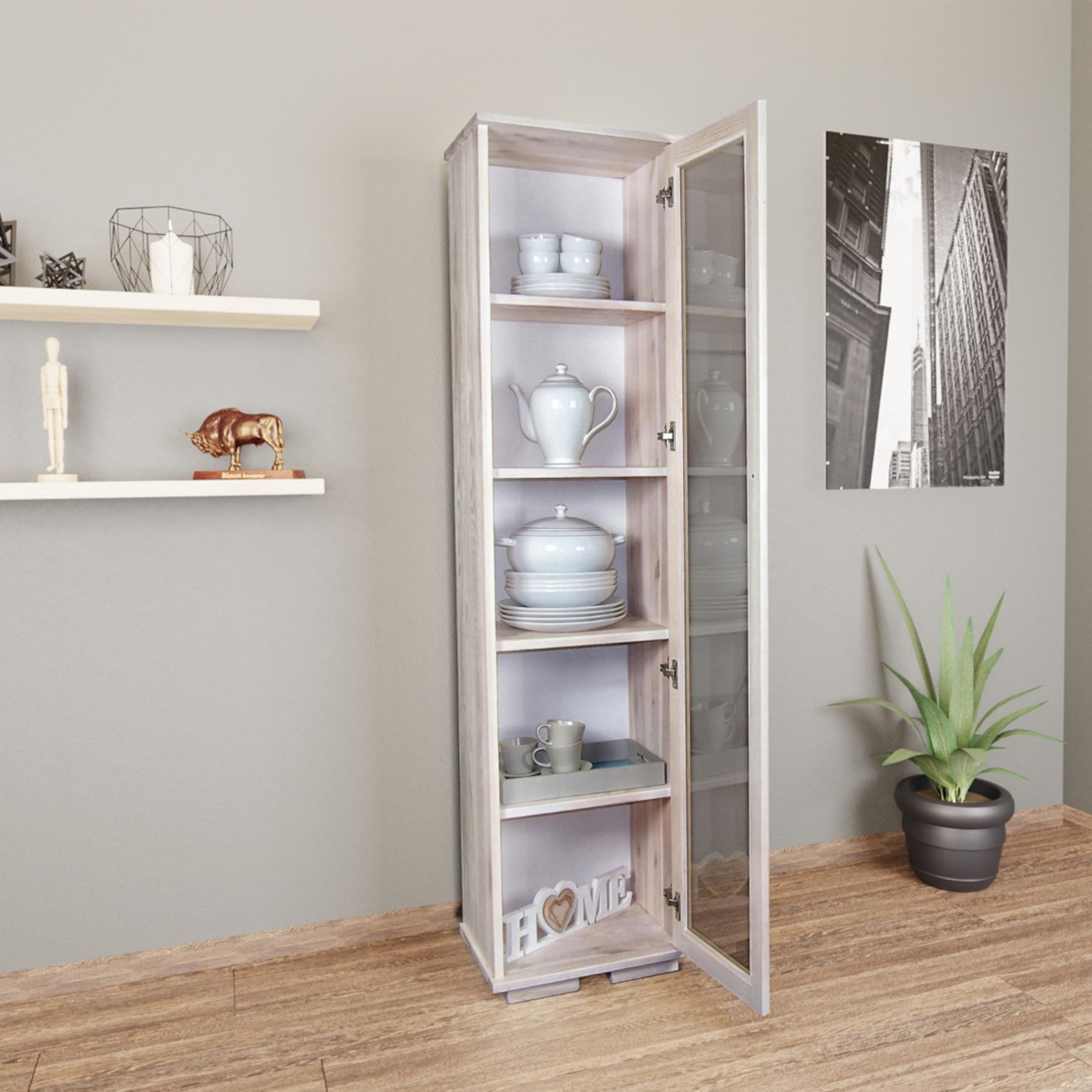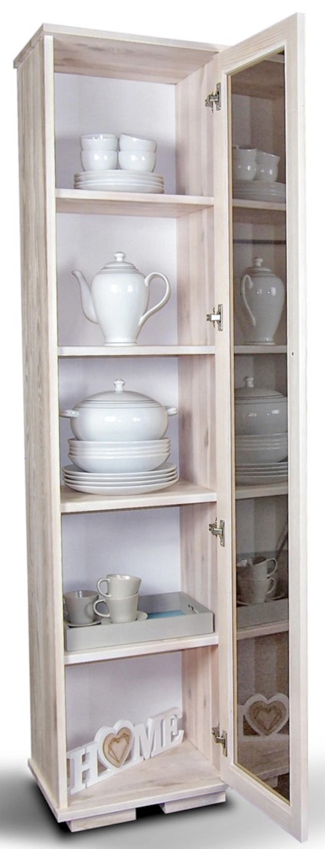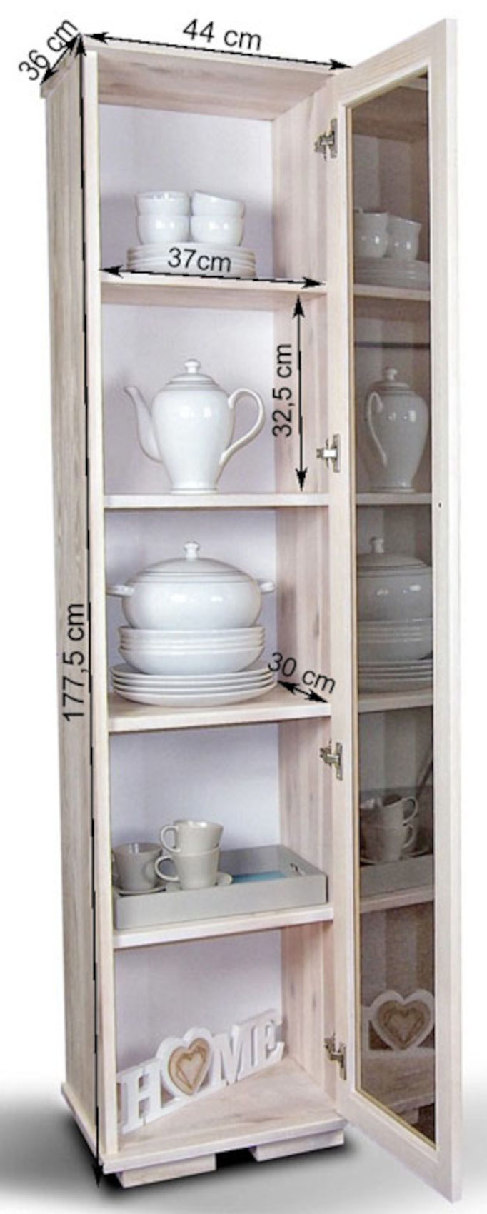 Za prosklenými dvířky jsou trvale namontovány 4 police k vystavení vašich oblíbených dekorací , porcelánu nebo rámečků s fotografiemi.