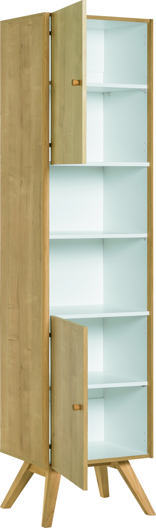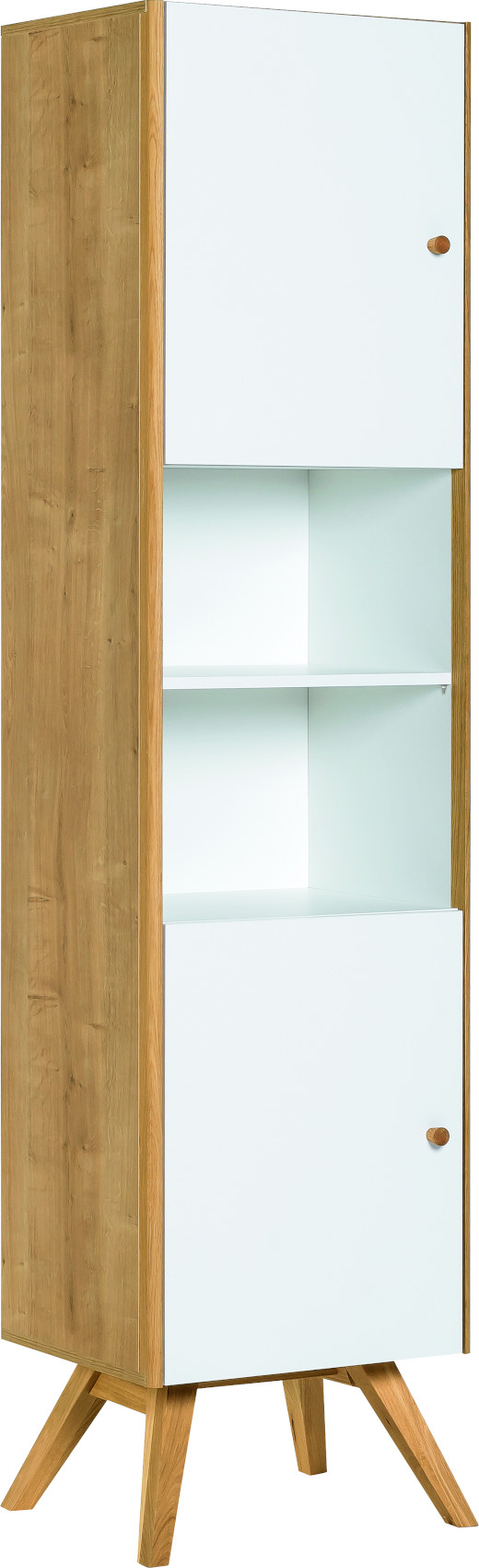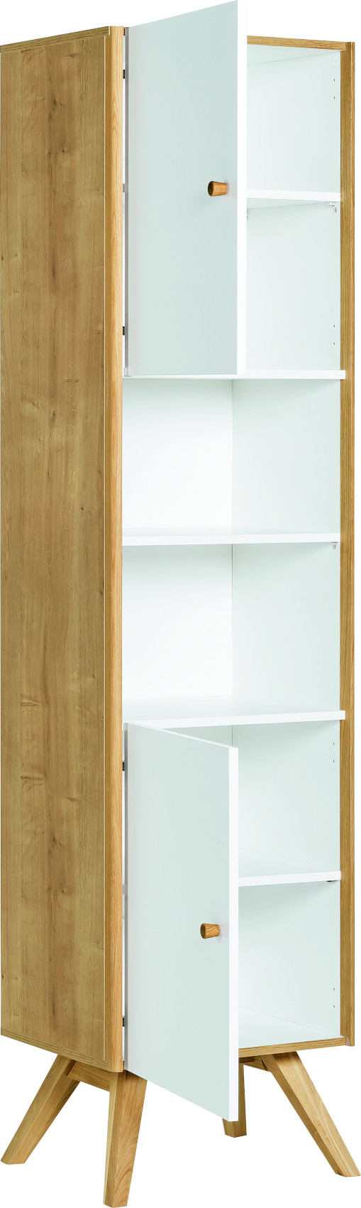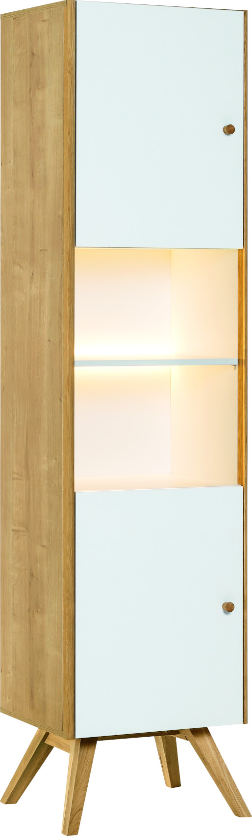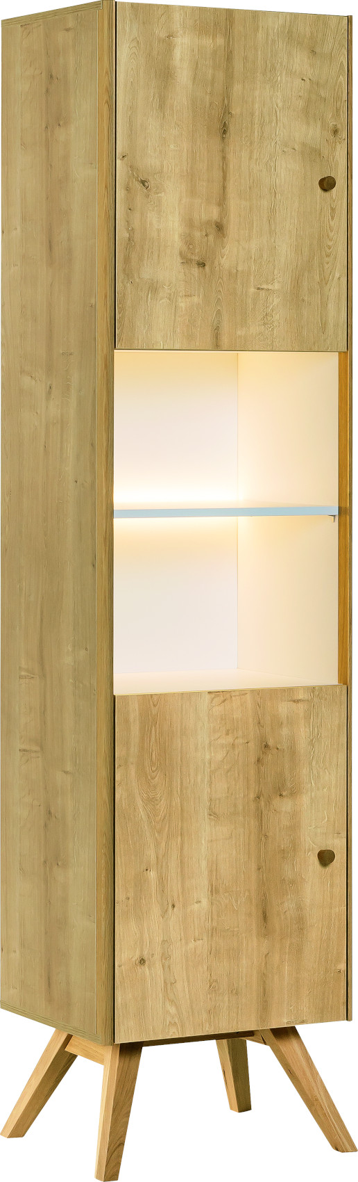 Vitrína Nature vás zaujme svým jednoduchým přírodním designem a retro stylem. Je vyrobena z kvalitního lamina o síle 16 mm, nohy, úchyty a hrany jsou z masivního dubového dřeva, které vám zajistí kvalitu a odolnost. Vysoké nožky dodají nábytku eleganci a provzdušní váš interiér. Nabízíme vám 2 dostupné barevné varianty - dub/dub a dub/bílá.