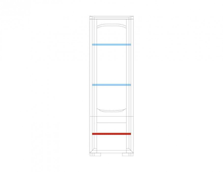Horní část vitríny je prosklená a uvnitř jsou vloženy 2 skleněné police. Skleněné police mají LED podsvícení, které dodá nábytku nádech luxusu a zpříjemní vám večerní atmosféru. Ve spodní části jsou plná dvířka s 1 lakovanou policí.