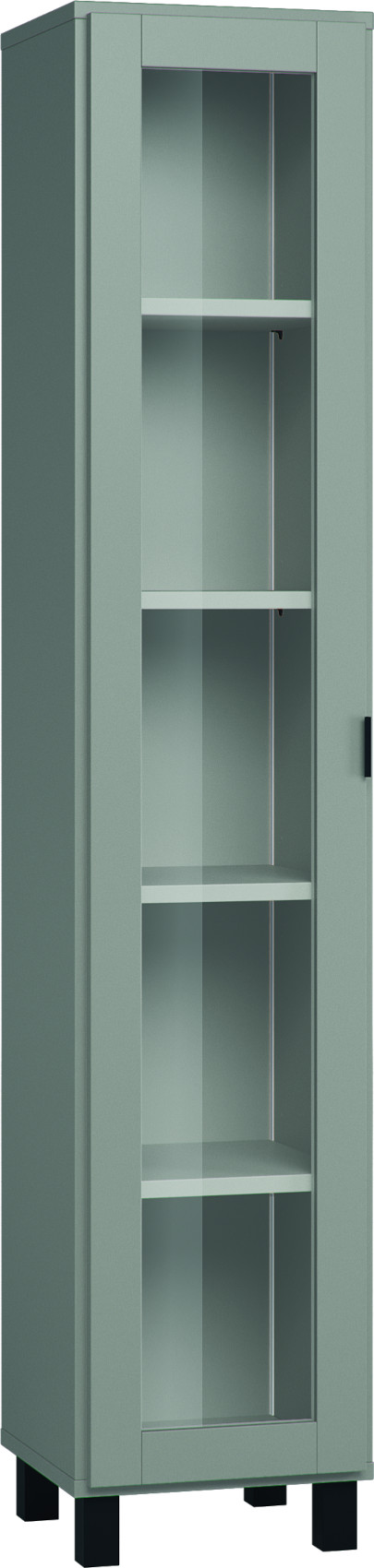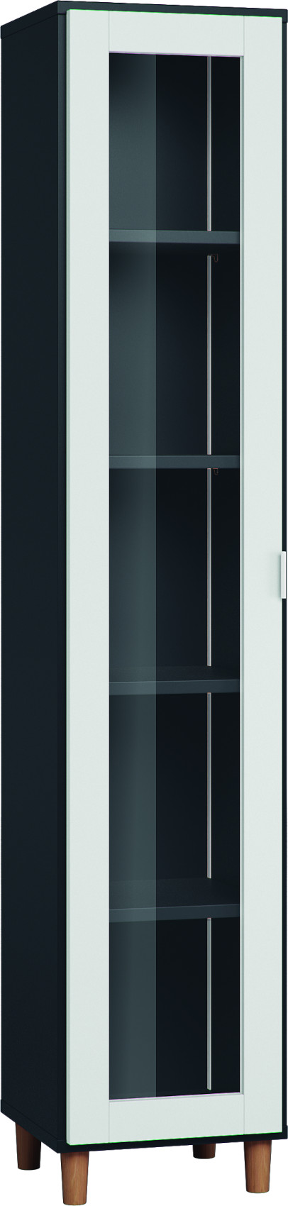 Úzká vitrína Simple vás zaujme svým jednoduchým a zároveň luxusním designem. Tělo i přední část jsou vyrobeny z kvalitního a odolného lamina. Úchyty jsou z kovu a nohy z masivního dubového dřeva, bukového dřeva nebo kovu - je pouze na vás, jaký typ nožky si zvolíte. Dvířka mají zabudovaný systém tichého dovírání. Nábytek Simple je jedinečný tím, že si sami zvolíte jeho barevné provedení.