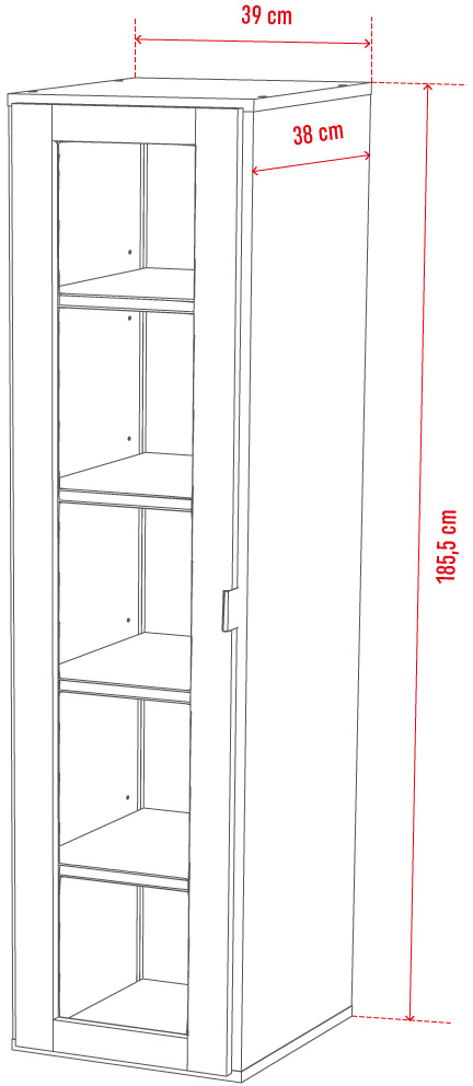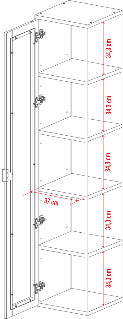 Ve vnitřním prostoru jsou vloženy 4 police s libovolně nastavitelnou výškou. Součástí je LED osvětlení, které dodá nábytku nádech elegance.