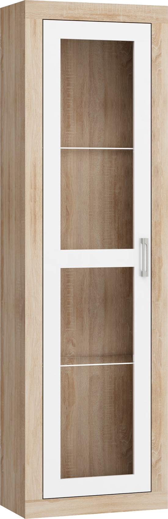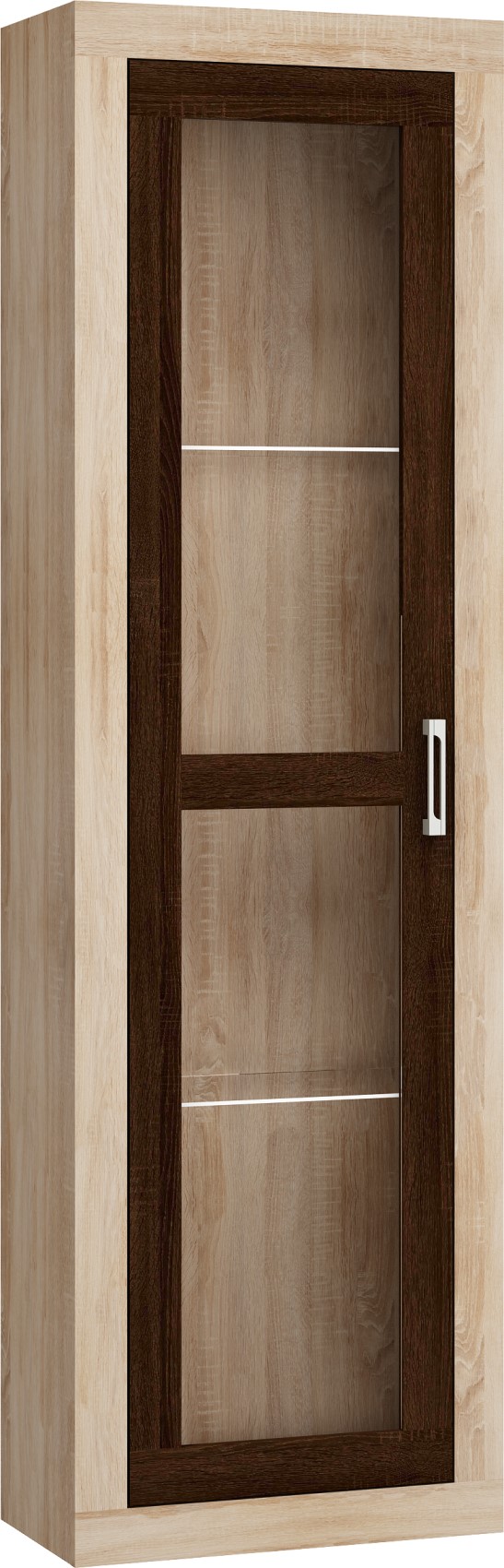 Vitrína Verin 08 se skvěle hodí do moderně zařízených interiérů. Zaujme vás svým neobvyklým avšak moderním designem a přírodním provedením. Je vyrobena z kvalitních lamino desek o síle 16 mm. Nabízíme vám několik barevných variant. Zajímavý design barev dodává vitríně ještě více na luxusu a nadčasovosti. Jednotlivé díly jsou variabilní, lze je navzájem kombinovat a vytvořit si tak obývací sestavu podle svých představ.