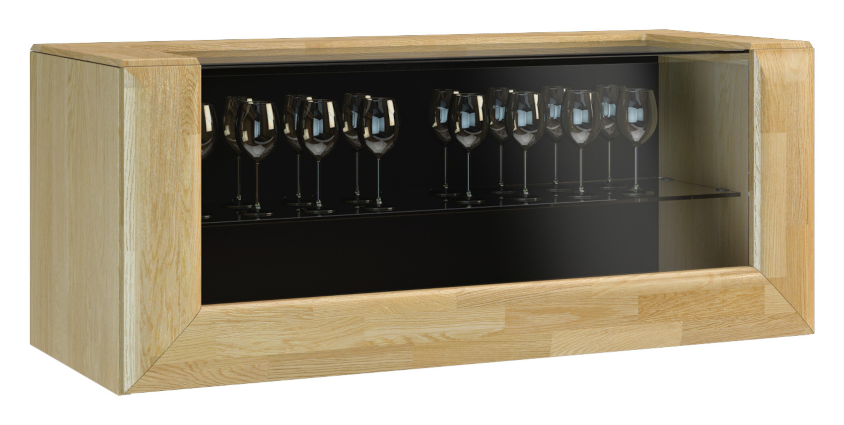Závěsná prosklená skříňka Rossano 1DS vás zaujme svým moderním a jednoduchým designem. Je vyrobena z masivního dubového dřeva a skla Antisol. Kvalitní technologie lakování a moření dodává nábytku přirozený vzhled a zvýrazňuje jeho strukturu lét. Za příplatek si můžete zvolit horní desku s masivní dubovou hranou. Celkový systém má jednoduchý dotykový systém otevírání dvířek - Push to open. Máte na výběr ze 2 barevných variant.