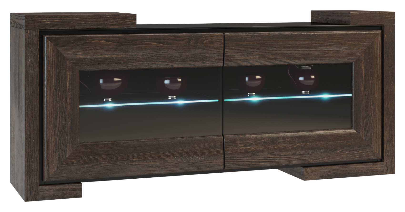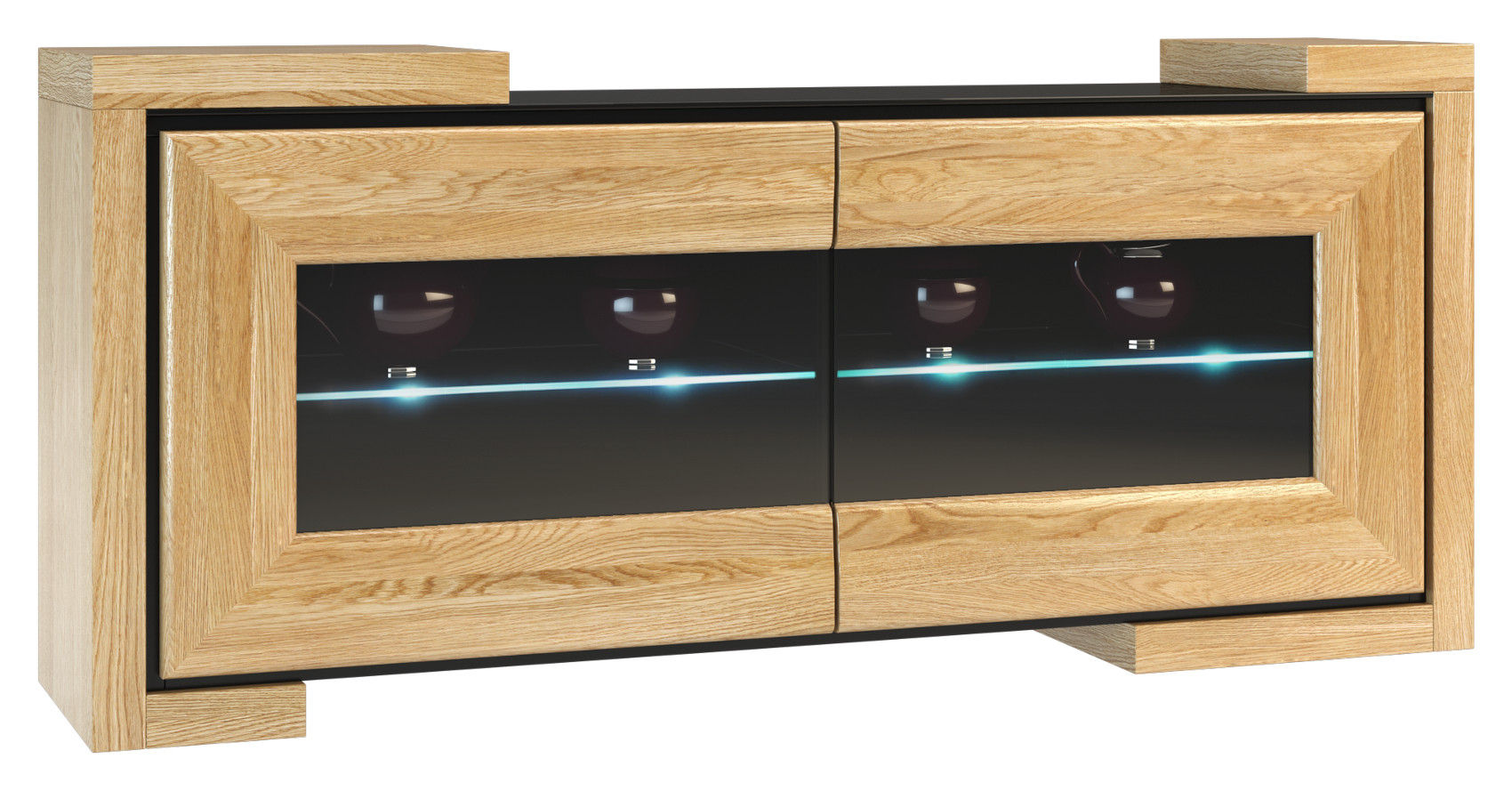 Za částečně prosklenými dvířky sklem Antisol jsou vloženy 2 skleněné police. Za příplatek si můžete zvolit variantu s LED podsvícením, které dodá nábytku nádech elegance a zpříjemní vám večerní atmosféru.