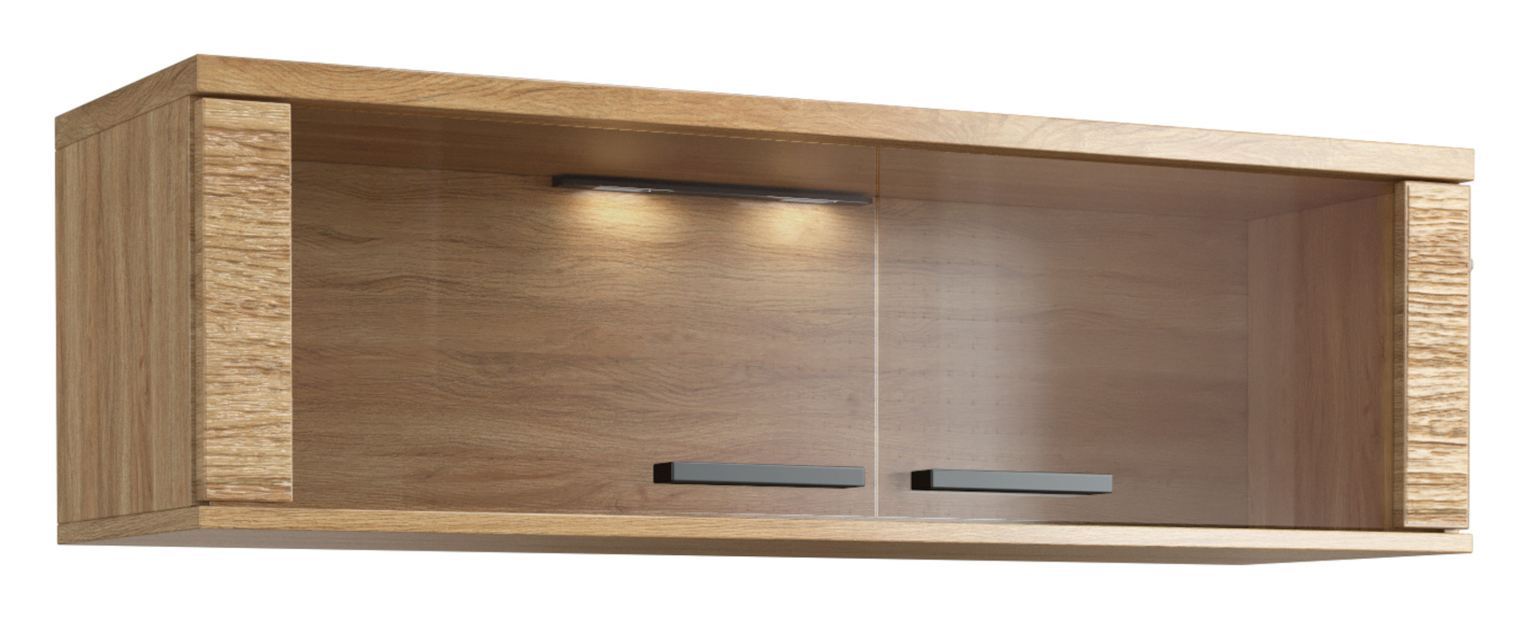 Závěsná vitrína Pik malá s osvětlením vás zaujme svým moderním a jednoduchým designem. Přední část nábytku je vyrobena z masivního dubového dřeva a korpus je z přírodní dubové dýhy. Kvalitní technologie lakování a moření dodává nábytku přirozený vzhled dřeva a zvýrazňuje strukturu lét. Dvířka mají tiché dovírání.