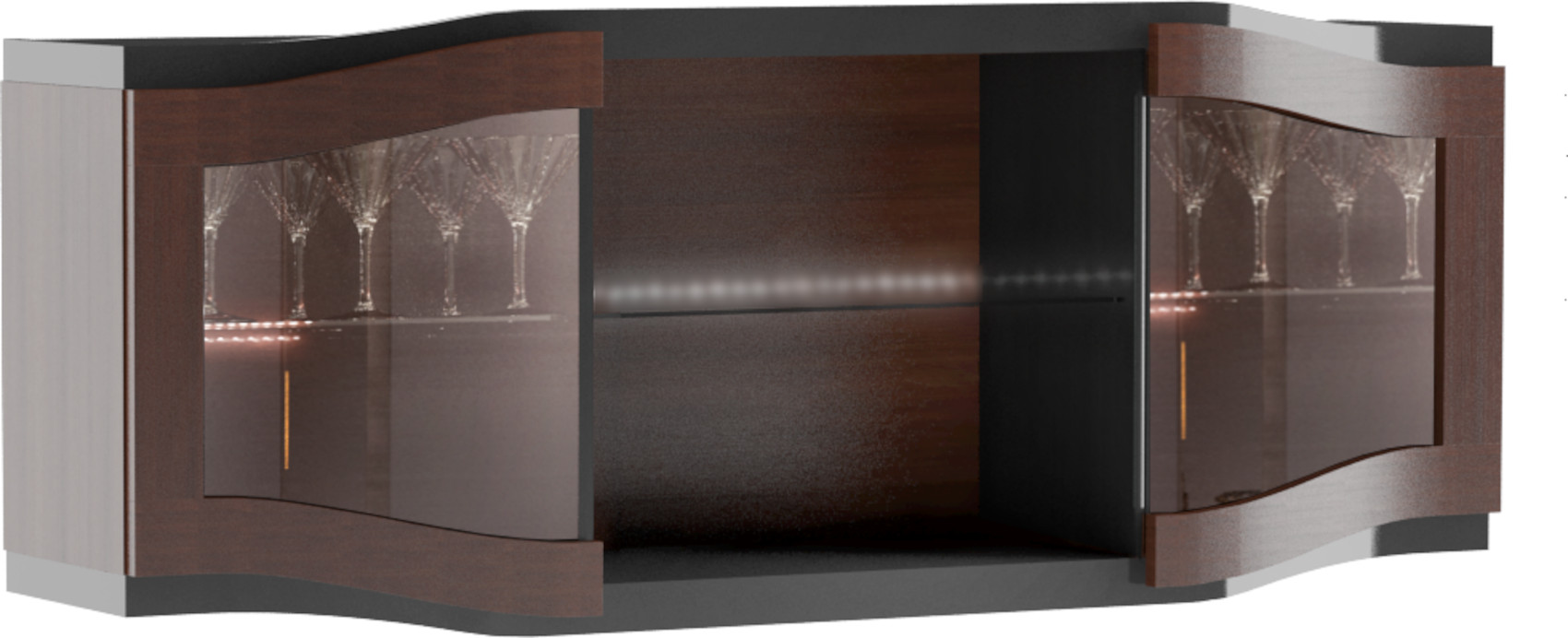 Závěsná vitrína Diuna velká 2DS vás zaujme svým moderním a elegantním designem. Jedinečným prvkem jsou dvířka ve tvaru vlny. Vitrína je vyrobena z masivu a masivní třešňové dýhy s černými lakovanými detaily. Kvalitní lakování a moření dodává nábytku přirozený vzhled a zvýrazňuje jeho strukturu lét. Systémový nábytek Diuna má jednouchý dotykový systém otevírání dvířek - Push to open.