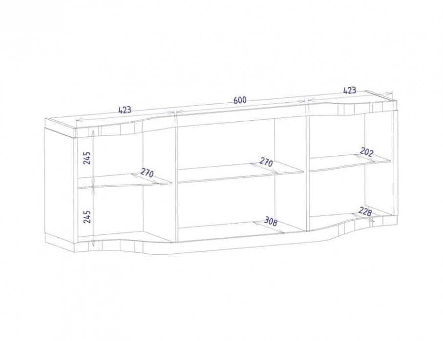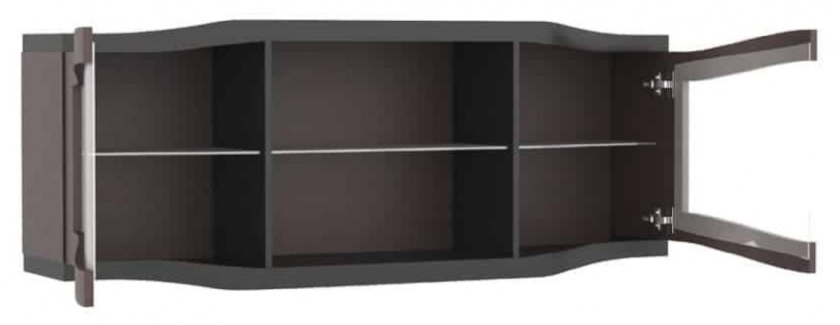 Vitrína je rozdělena do 3 částí, jejichž vnitřní prostor vyplňují 3 skleněné police. Na krajích jsou 2 prosklená dvířka, prostřední část je otevřená. Vitrína je doplněna LED podsvícením, které dodá nábytku nádech luxusu, jedinečnosti a zpříjemní vám večerní atmosféru.