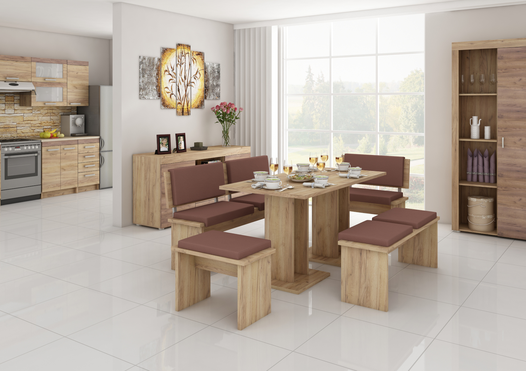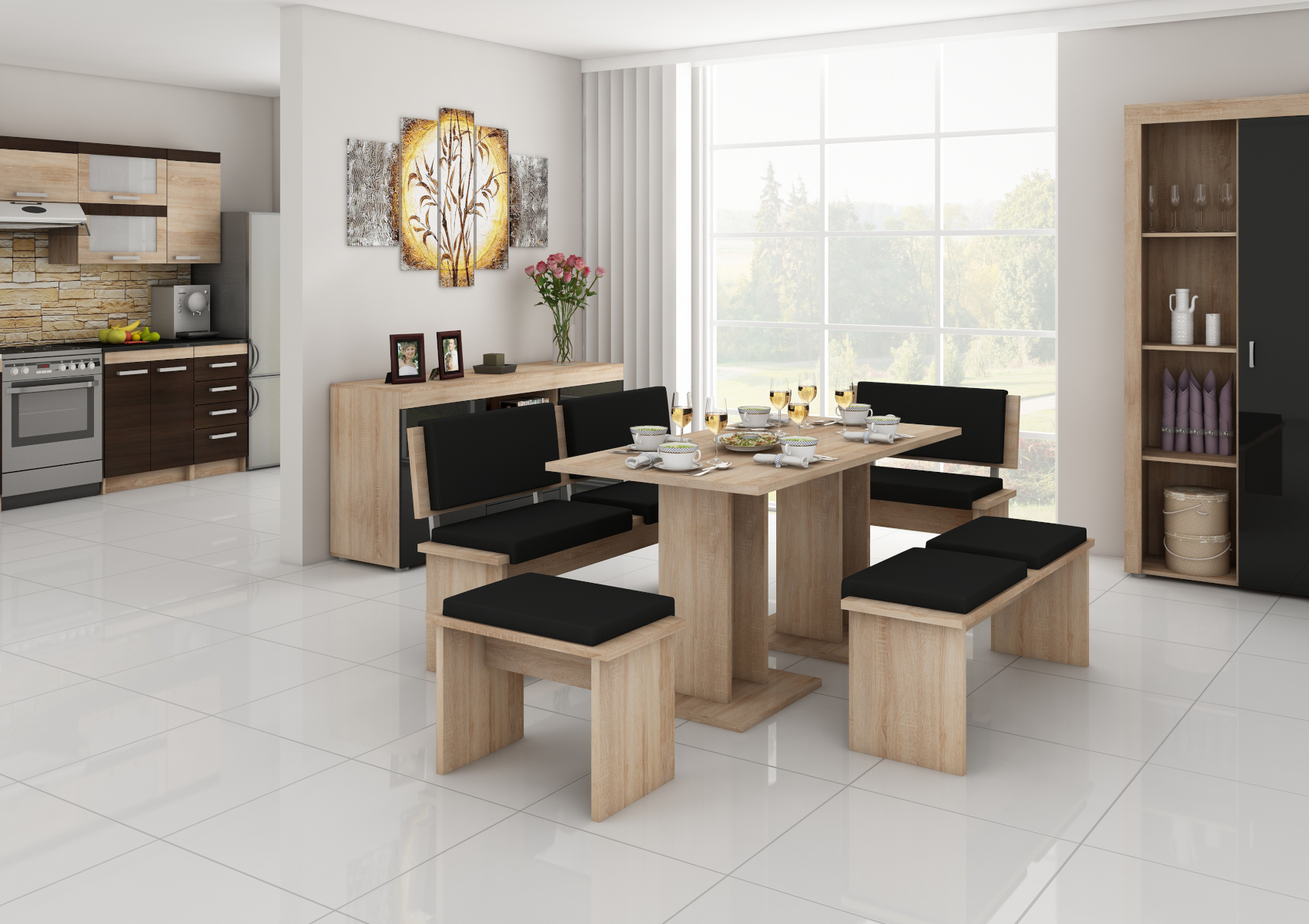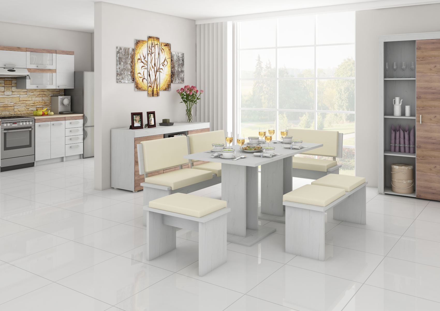 Jídelní velká lavice Bond 01 vás zaujme svým moderním designem s originálními tvary. Je velmi praktickým nábytkem nejen do jídelny, ale také do předsíňových prostor či pracoven. Je vyrobena z lamina o šířce 16 mm a 25 mm, které vám zaručí kvalitu. Desky mají ABS hranění, které zvyšuje odolnost proti odštípnutí hran. Nabízíme vám několik barevných variant moření a čalounění.